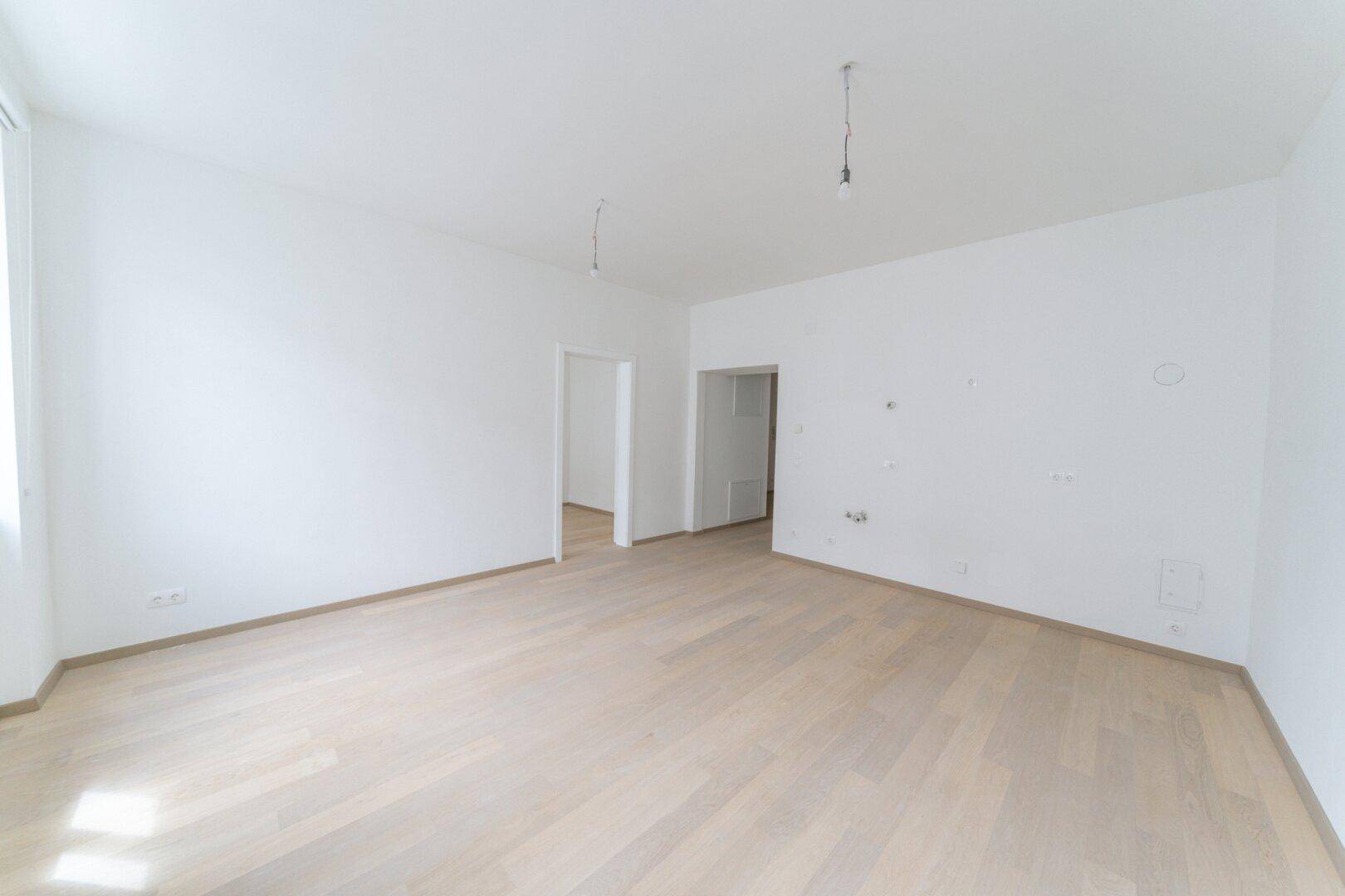 Auf ca. 64 m² Wohnfläche finden Sie einen großzügigen Vorraum, einen lichtdurchfluteten Wohnraum mit offener Küche, zwei ruhig gelegene Schlafzimmer sowie ein modernes Badezimmer. Zusätzlich bietet ein praktischer Abstellraum extra Stauraum.