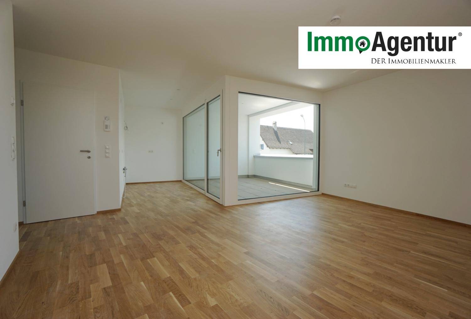 Die Wohnung punktet mit einer idealen Raumaufteilung. Große Fensterfronten im Wohn-/Essbereich sorgen für ein helles und angenehmes Raumgefühl. Der geräumige, helle und offene Wohnbereich ist geschickt in Funktionszonen zum Essen, Wohnen und Kochen unterteilt. Zudem wurde von der Firma Dan Küchen eine tolle Einbauküche eingebaut. Neben der praktischen Fußbodenheizung, welche sich durch die Wohnung zieht, sind hochwertige dreifach verglaste Fenster verbaut worden. Diese sorgen zusätzlich für eine sehr gute Isolierung. Das Badezimmer ist mit einer begehbaren Dusche, einem WC, einem Waschbeckenverbau ausgestattet. Zudem finden Sie jeweils moderne Fließen vor. Diese sehen nicht nur super aus, sondern bieten auch eine einfache Reinigung. Das Schlafzimmer und der Wohn-/Essbereich wurden mit einem schönen Parkett versehen. Einen Waschmaschinenanschluss finden Sie im Abstellraum vor.