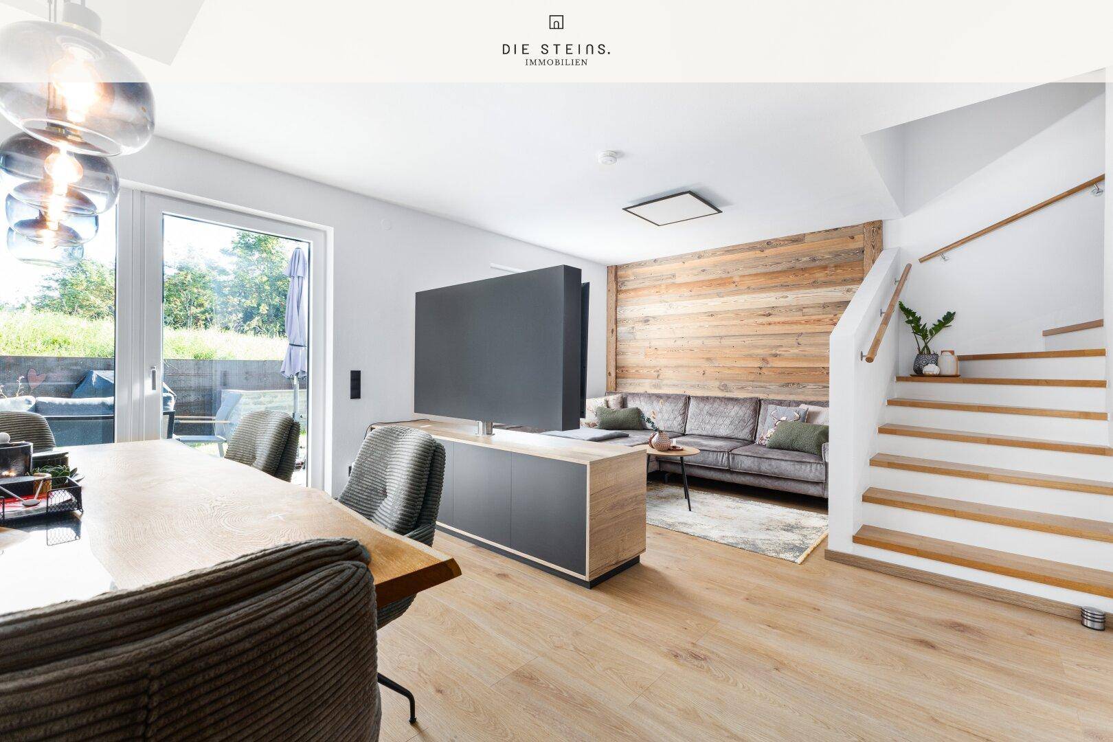 Diese moderne Doppelhaushälfte in der ruhigen Edtsiedlung verbindet zeitgemäßes Wohnen mit hoher Wohnqualität. Im Erdgeschoss befindet sich ein großzügiger Wohn- und Essbereich mit viel Tageslicht, der über bodentiefe Fenster direkten Zugang auf Terrasse und Garten bietet – ideal für entspannte Stunden im Freien oder gesellige Abende mit Familie und Freunden. Die maßgefertigte, hochwertige Küche ist harmonisch in den Raum integriert und bleibt Teil des Hauses.
