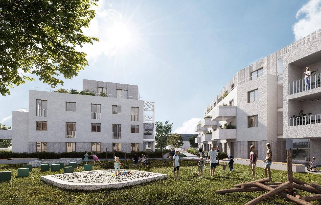 Ein weiteres Mal kann die "Neue Heimat" ein gelungenes Bauprojekt in Wr. Neustadt realisieren. Entstehen wird ein attraktives Wohngebiet, bestehend aus 3 freistehenden Baukörpern mit insgesamt 102 geförderten Mietwohnungen ohne Kaufoption und 137 Garagenplätzen. Im Haus 1 wurde im Erdgeschoß ein 4-gruppiger Kindergarten errichtet. Weiters befindet sich ein bestehendes Cafehaus in der Mitte der Anlage sowie als "Nachbar" eine BILLA-Filiale. Im Haus 3 wird im Dachgeschoß ein Gemeinschaftsraum sowie eine Gemeinschaftsterrasse zur Verfügung stehen. Selbstverständlich sind auch Fahrradabstellplätze sowie Kinderwagenräume in jedem Haus situiert. Ebenso wird ein Kleinkinderspielplatz im nördlichen Teil des Hauses 3 realisiert. Die Beheizung erfolgt mittels Biogas, ebenso werden Photovoltaikmodule auf den Dächern aller 3 Häuser installiert.