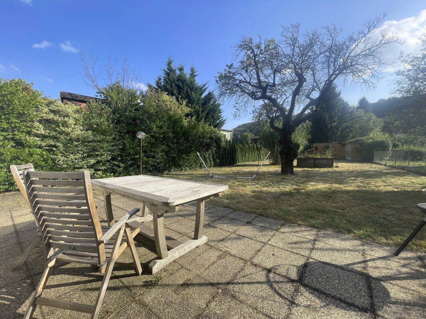 Der große Garten erstreckt sich hauptsächlich im hinteren Teil des Grundstücks und lädt mit seiner idyllischen Gestaltung zum Verweilen ein. Auf einer eigenen Gartenterrasse mit Grillplatz lassen sich laue Sommerabende entspannt genießen. Ein kleines Gartenhaus rundet das Outdoor-Angebot ab.