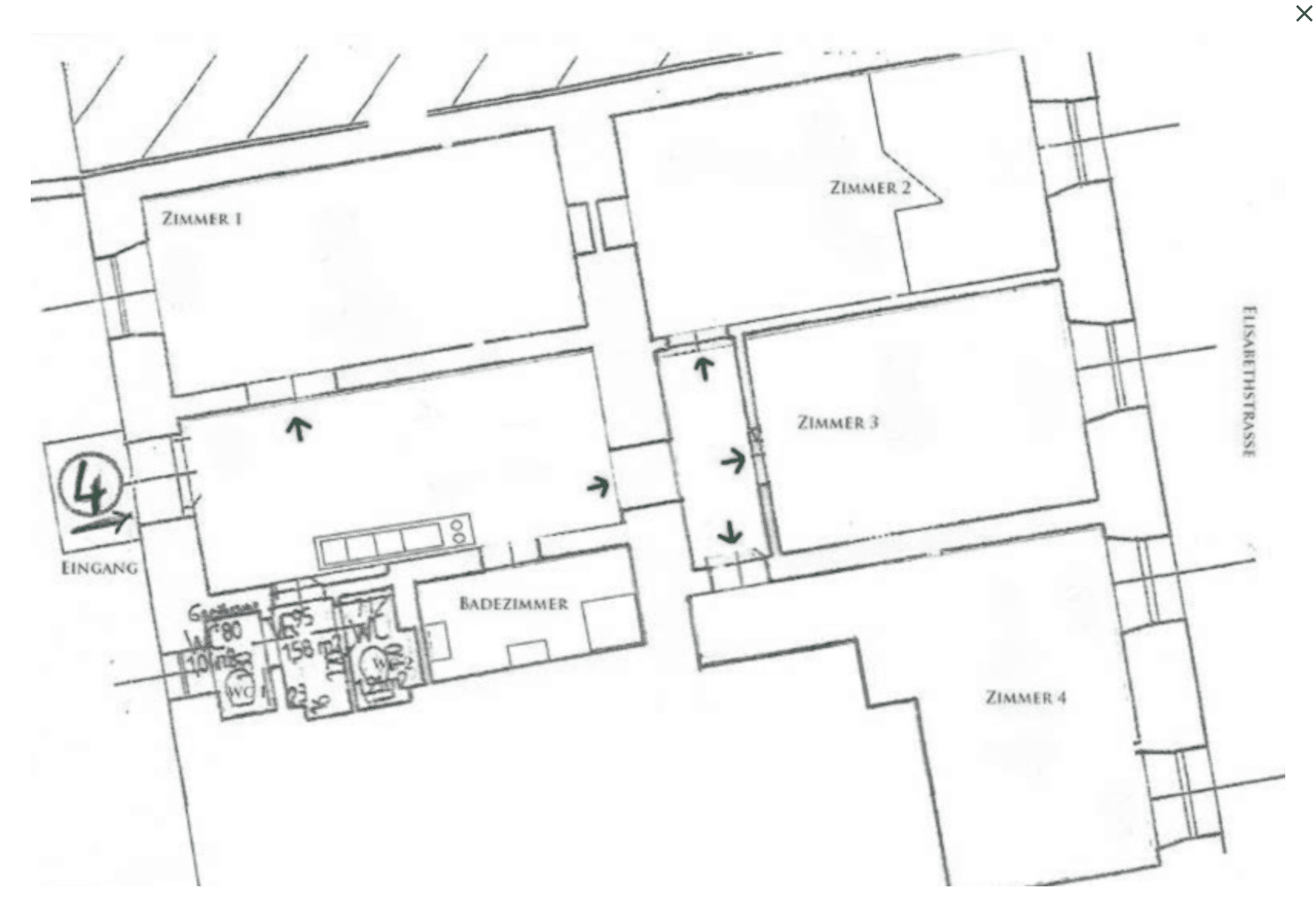 4 getrennt begehbare Zimmer und Küche/Wohnzimmer plus 2 WCs.