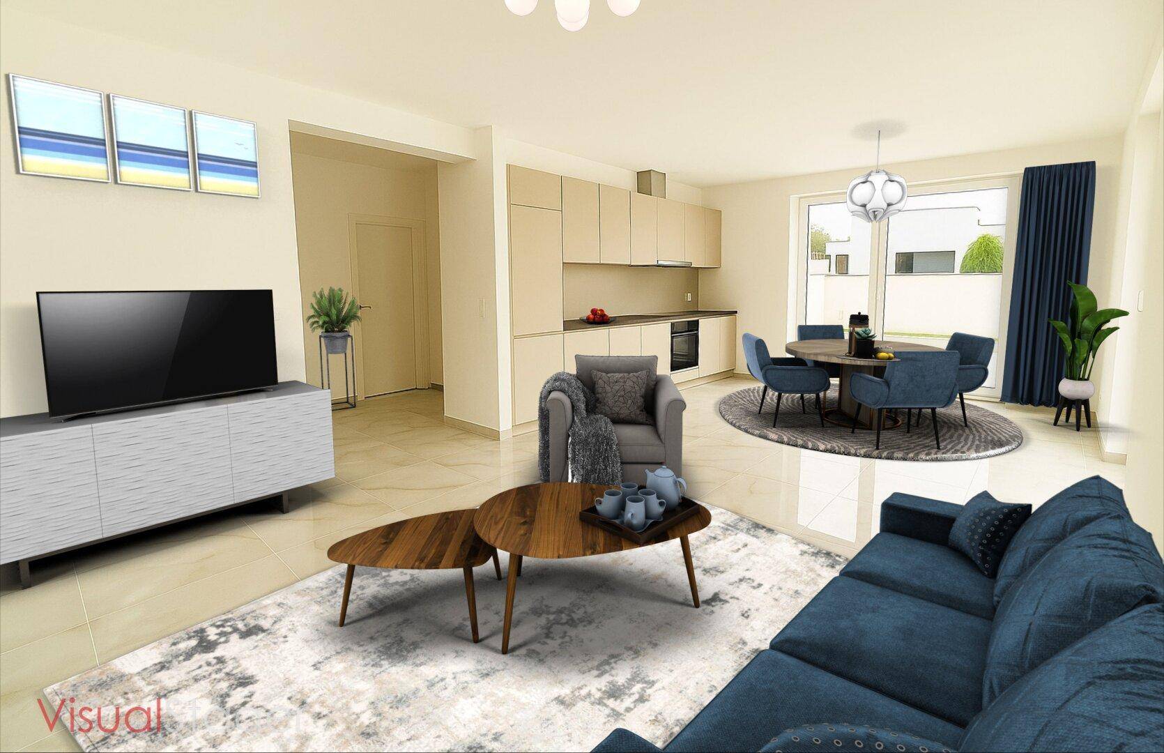 Vom großzügigen Wohnbereich gelangt man direkt auf die ca. 21 m² große Terrasse.