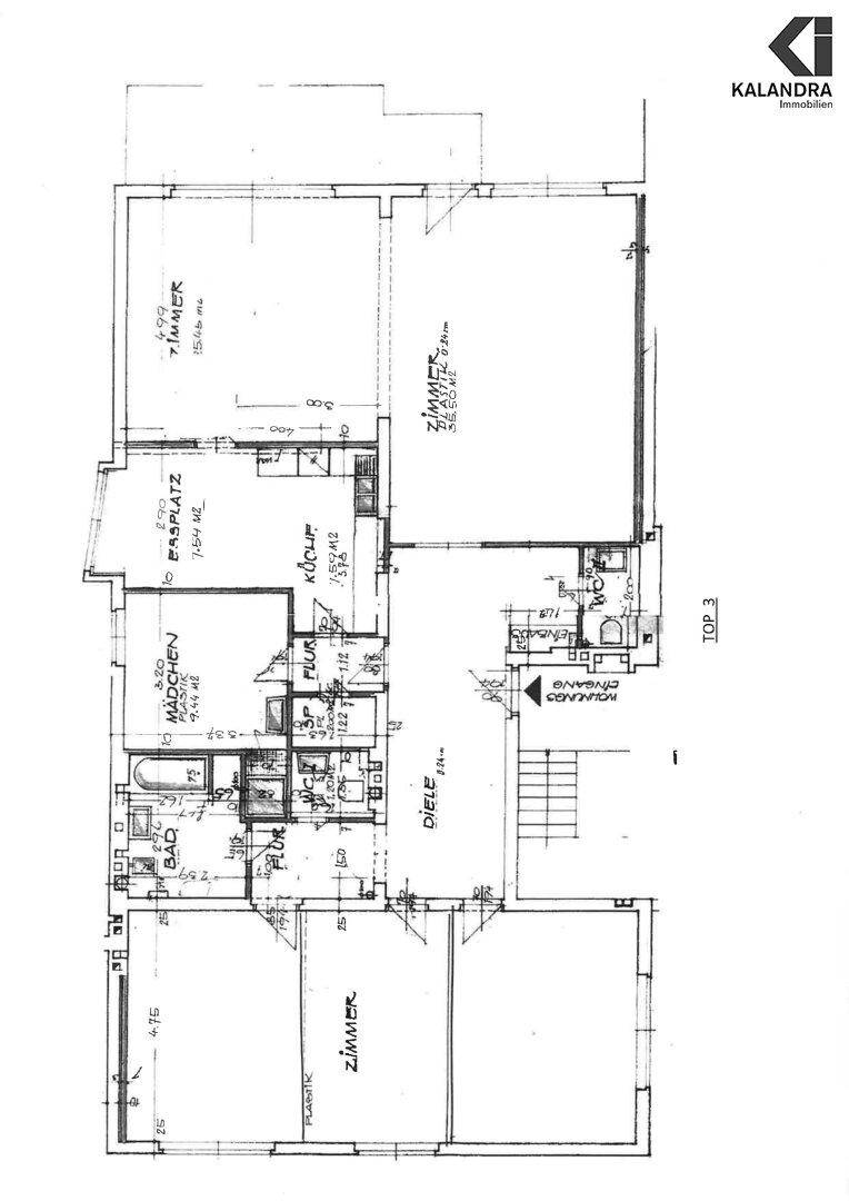 central anteroom, large living/ dining room (approx. 61m²) with exit to a 12m² south-facing, garden-side terrace, kitchen with dining place (approx. 15m²), 3 bedrooms (2 x approx. 13m², 1x approx. 18m²), one smaller kabinett (approx. 9m²) with shower, a bathroom with bathtub and bidet, 2 separate toilets, walk-in cloak-/ storage room.