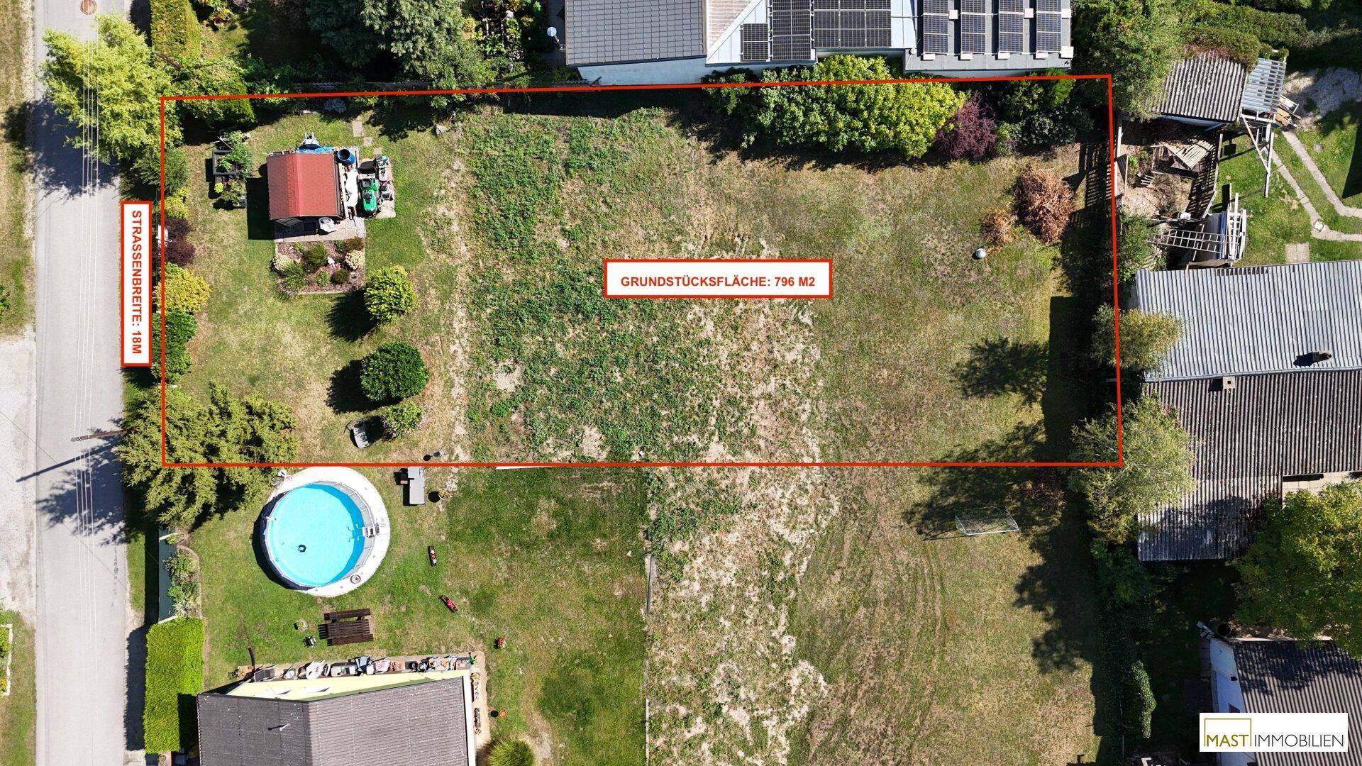 Das Grundstück umfasst eine Fläche von ca. 796 m². Es handelt sich hierbei um eine Neuteilung zweier bestehender Parzellen (Grundstück 3).