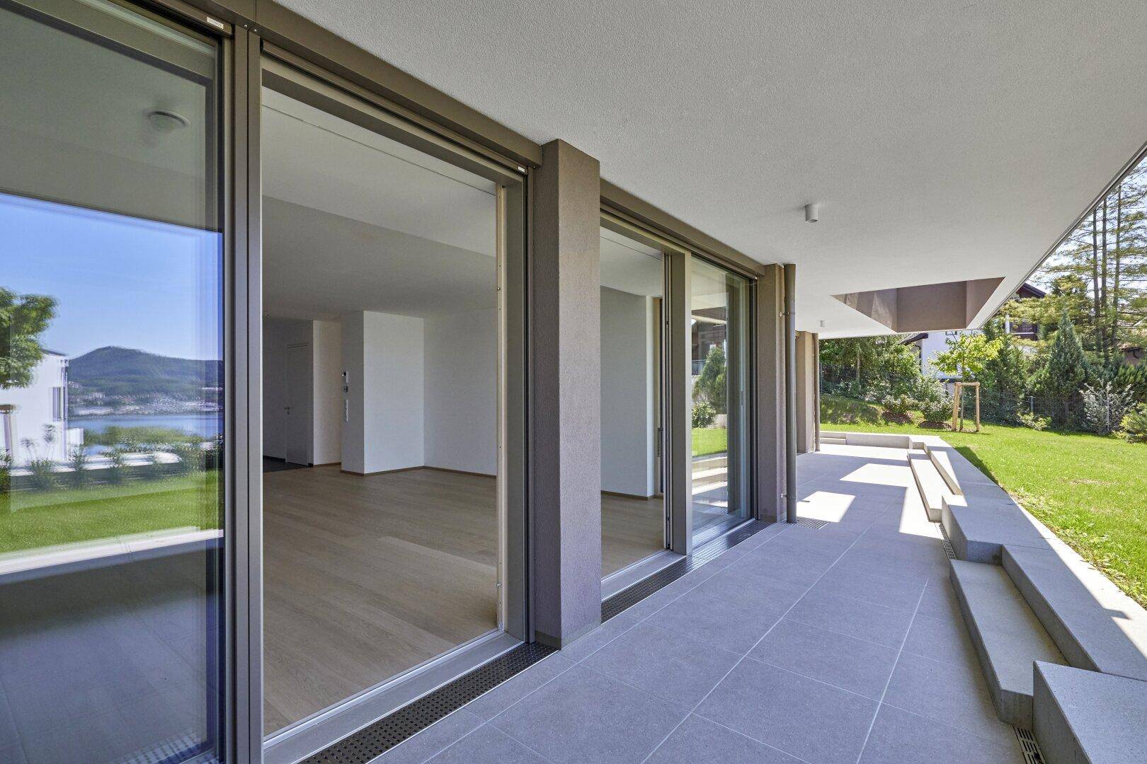 Ein weiteres Highlight der Wohnung ist der einzigartige See und Bergblick, welchen ihre 42,83m² große Terrasse ihnen zusätzlich bietet.
