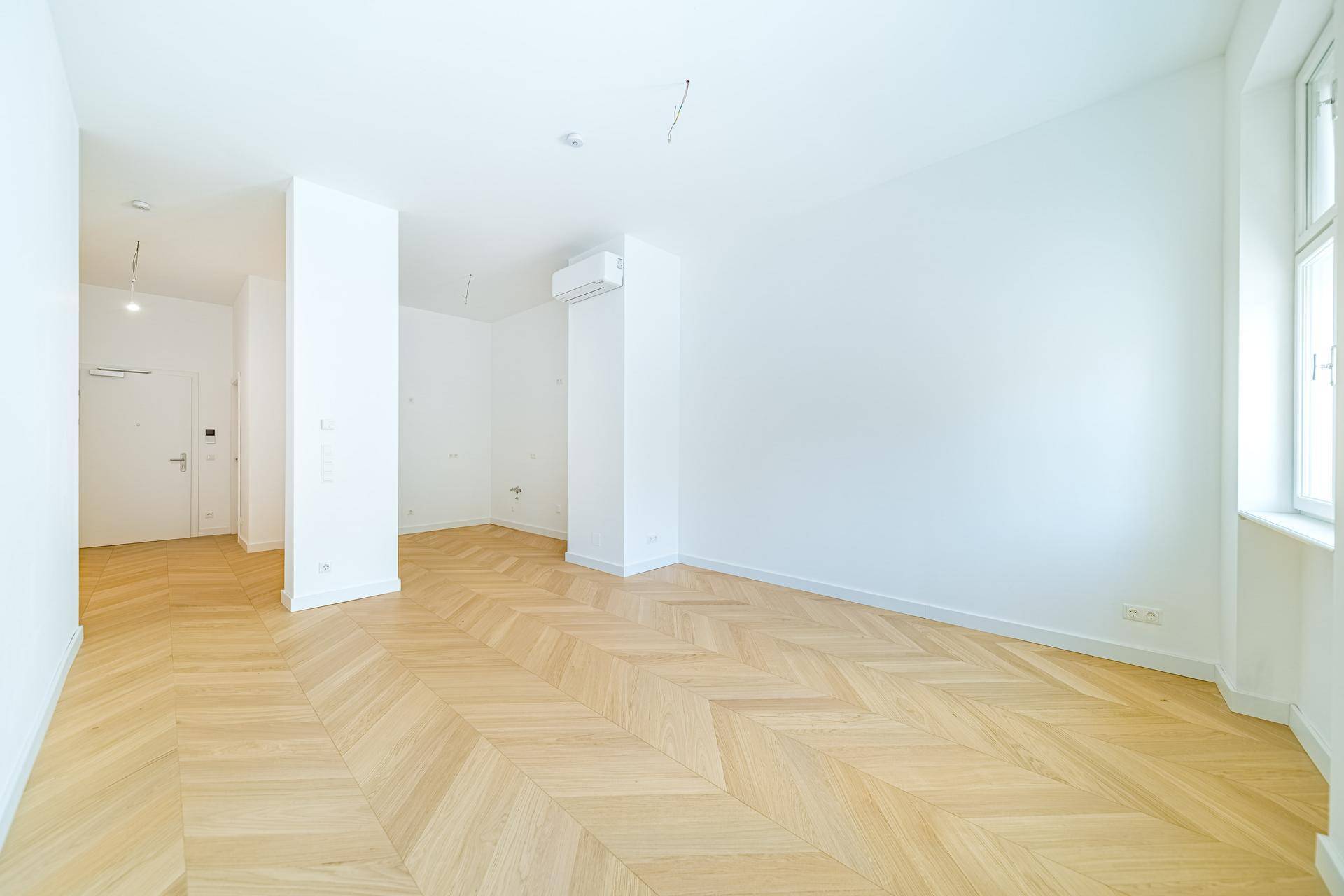• Französischer Fischgrätparkett • Fußbodenheizung mit Fernwärme • Klimaanlage vorhanden (Splitgeräte in Schlafzimmer und Wohnzimmer) • Hochwertige Tischlerfenster mit Schallschutz • Altbauflair durch Raumhöhen von über 3,20 Meter. • Kellerabteil als Zubehör inkludiert