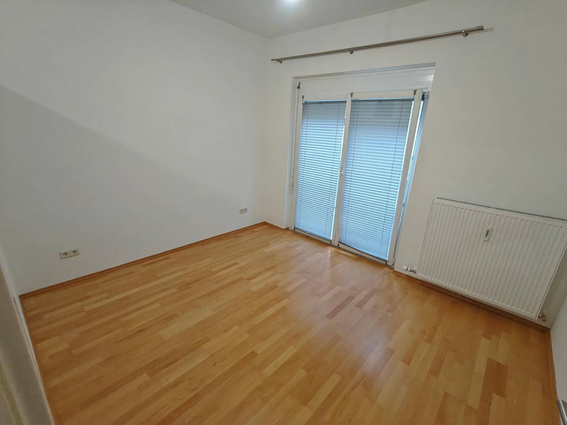 Die Wohnung besteht aus 2 getrennt begehbaren Zimmern, Einbauküche (ausgestattet mit Cerankochfeld, Backrohr, Geschirrspüler und Kühlschrank mit Gefrierfach), Bad mit Dusche und Sprossenheizkörper, Abstellraum, Vorraum und separatem WC. Die Fenster der Zimmer befinden sich innenhofseitig, somit ist die Wohnung von Straßenlärm abgeschirmt. Eines der Zimmer verfügt über einen französischen Balkon.