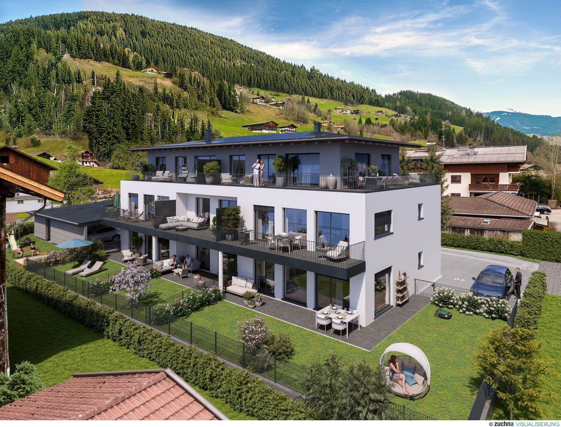 Die b. living GmbH entwickelt in der Katastralgemeinde Mühlbach im Pinzgau das Wohnbauprojekt „b. living“, welches funktionalen und modernen Wohnraum zu einem attraktiven Preis- Leistungs-Verhältnis bietet. Durch eine intelligente Konzipierung des Wohngebäudes mit einer gut durchdachten Grundrissgestaltung wird erschwinglicher Wohnraum geschaffen. Das mehrgeschossige Wohngebäude besteht aus acht Wohneinheiten mit einer Größe von ca. 54-89 m2, einschließlich Abstellräumen im Kellergeschoss. Alle modern ausgestatteten Einheiten verfügen über großzügige Terrassen oder private Gärten. Für die Bewohner:innen steht ein Carport mit Platz für acht PKW-Stellplätze, sowie Abstellmöglichkeiten für Fahrräder und Kinderwägen zur Verfügung. Weiters befindet sich auf dem Grundstück ein Kinderspielplatz und zusätzliche Besucher- Parkplätze. Das Wohnbauprojekt „b. living“ kombiniert eine Massivbauweise mit Sonnenenergie aus Photovoltaik und Fernwärme. Die qualitativ hohe Ausstattung mit Parkett- Böden, Großformat-Fliesen und großflächigen Fensteröffnungen bietet besonderen Mehrwert und Komfort.