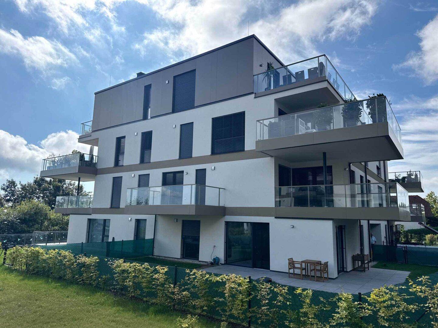 Zum Verkauf gelangt eine Gartenwohnung im Erdgeschoss eines Neubauprojektes im Zentrum von Kirchschlag, welcher 2024 bezugsfertig wurde.