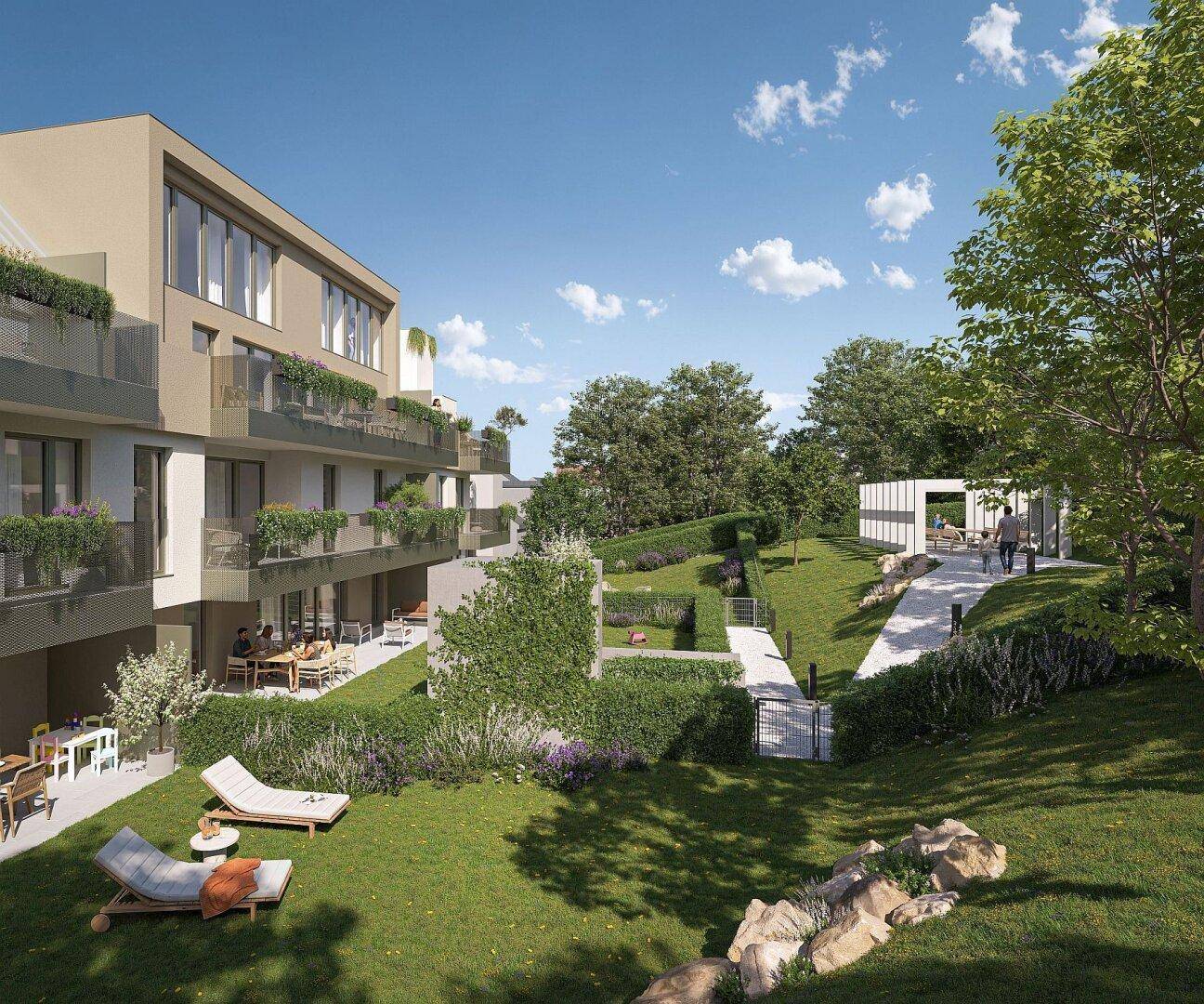 Wohnen im Grünen und doch in der Stadt, beste öffentliche Verkehrsanbindung und perfekte Grundrisse.
