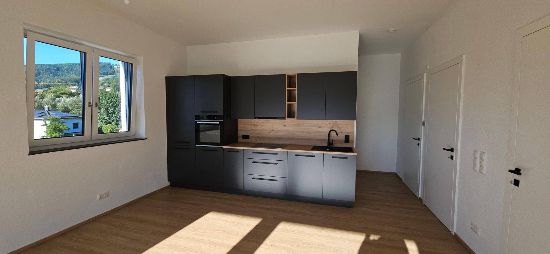 Moderne Luxus Neubau-Wohnung mit 60 m² Wohnfläche und großzügigem 16 m² Balkon in Micheldorf. Die Mietkosten betragen 960 € monatlich und beinhalten einen eigenen Parkplatz. Die Wohnung verfügt über eine Fußbodenheizung mit Luftwärmepumpe, eine eigene Klimaanlage in Schlafzimmer und Wohnzimmer, Glasfaser, Tischlerküche mit Geräten, riesige Fensterflächen (3x2,50 meter und 2x2,50 meter) und elektrischer Raffstore und Rollläden.