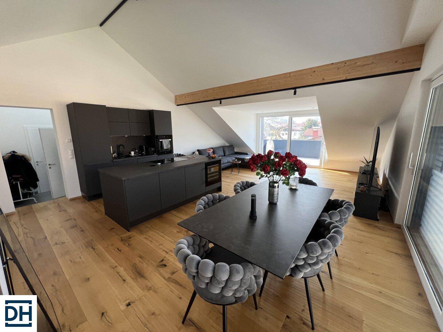 In absoluter Premiumlage in Bergheim, befindet sich im neu errichteten Dachgeschoß diese extravagante Penthousewohnung. Die Lage direkt an der Fischach, mit atemberaubenden Blick auf den Voggenberg, Untersberg, Maria Plain, ist einzigartig. Lichtdurchflutete Räume mit bis zu 4 Metern Raumhöhe mit großen Fenstern und Türelementen, lassen keine Wünsche mehr offen. Das modern gestaltete Architektenhaus besteht insgesamt aus nur 4 Wohnungen und einer Büroeinheit. Im Aussenbereich gibt es Carports und einen Fahrradraum, wo von ein Carport und ein Freistellparkplatz zur Wohnung gehören. Die Wohnung liegt im zweiten und obersten Stock und ist bequem mit dem Aufzug zu erreichen. Hervorzuheben ist der großzügige, helle, Wohn- Koch-Essbereich mit zwei großen Hebeschiebetüren. Die moderne Venda Küche ist ausgestattet mit hochwertigen Geräten, wie zB. Induktionsherd, Kühl-/Gefrierkombi einem Miele Backofen und verfügt sogar über einen Weinkühler, hier macht kochen Spaß.