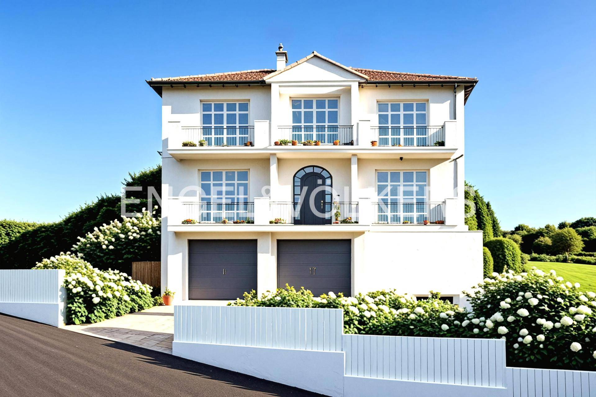 Die Villa erstreckt sich über drei Stockwerke mit einer Wohnfläche von ca. 317 m² und einer Gesamtnutzfläche von ca. 484 m². Fünf Zimmer bieten Raum für mehrere Schlafzimmer, offene Wohn- und Essbereiche sowie einen möglichen Wellness- und Saunabereich. Großzügige Terrassen und Balkone schaffen private Rückzugsorte und verbinden die Wohnräume mit der Natur.