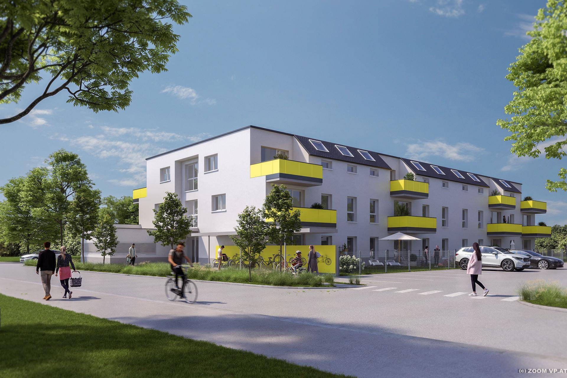 Diese Wohnung im ersten Obergeschoss verfügt über 2 Zimmer und eine Wohnfläche von 61,46 m². Sie ist mit einem 6,30 m² großen Balkon in südwestlicher Ausrichtung ausgestattet. Der Wohnung sind ein KFZ-Stellplatz und ein Einlagerungsraum zugeordnet. Kinderwagen- und Fahrradabstellplätze stehen allen Mietern zur Verfügung. _________________________________________