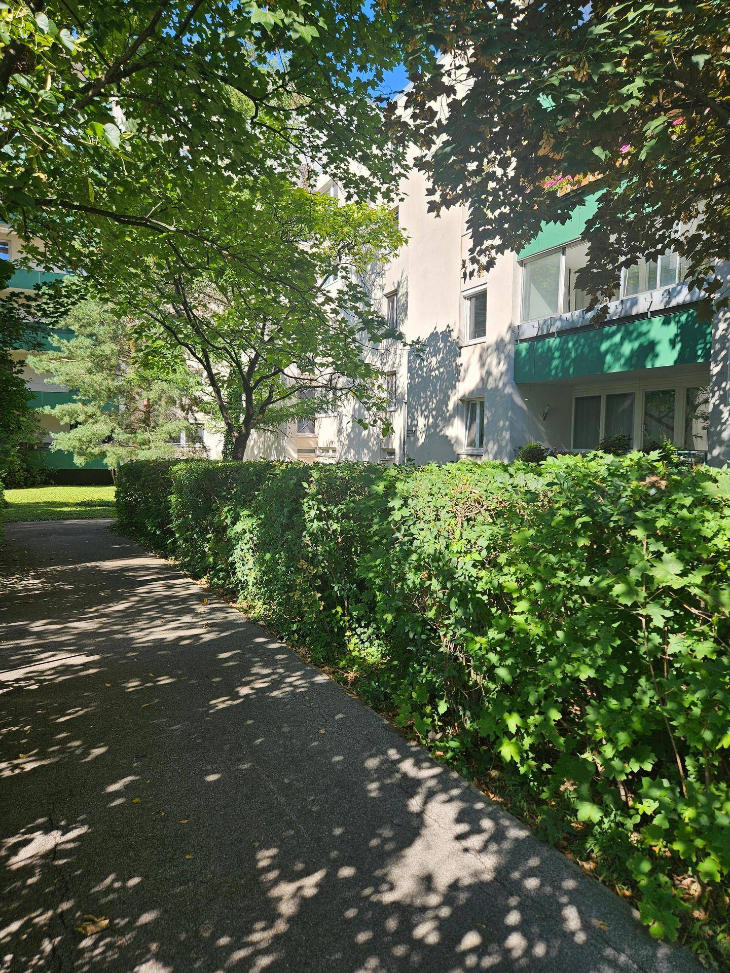 Das Wohngebäude ist umgeben von einer weitläufigen Parkanlage die für eine ruhige Umgebung sorgt. Dennoch ist man durch die hervorragende öffentliche Anbindung in nur wenigen Minuten in der Stadt Wien.