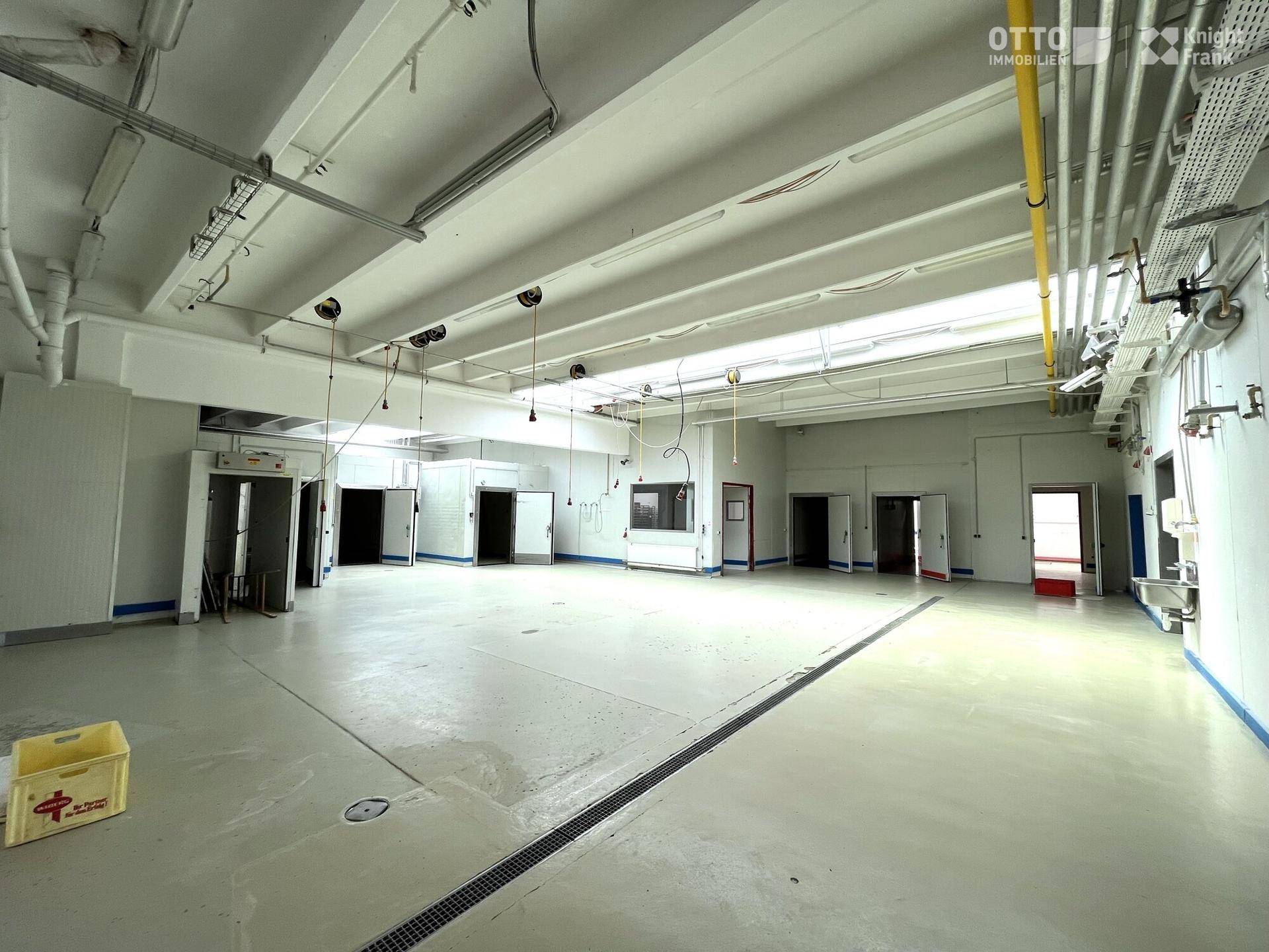 HALLE: • Ca. 2.100,00 m² Hallenfläche • Davon ca. 202,00 m² Tiefkühlflächen (bis -23°C kühlbar) • Schockfroster • Kühlpufferflächen • Ca. 4 m Hallenhöhe • 3 Anpassrampen • 3 Sektionaltore • Industrieboden • Gasanschluß in der Produktion • Fernwärmeanschluß • PV-Anlage (Photovoltaik) mit 46 kWp im Aufbau, 200 kWp in Vorbereitung