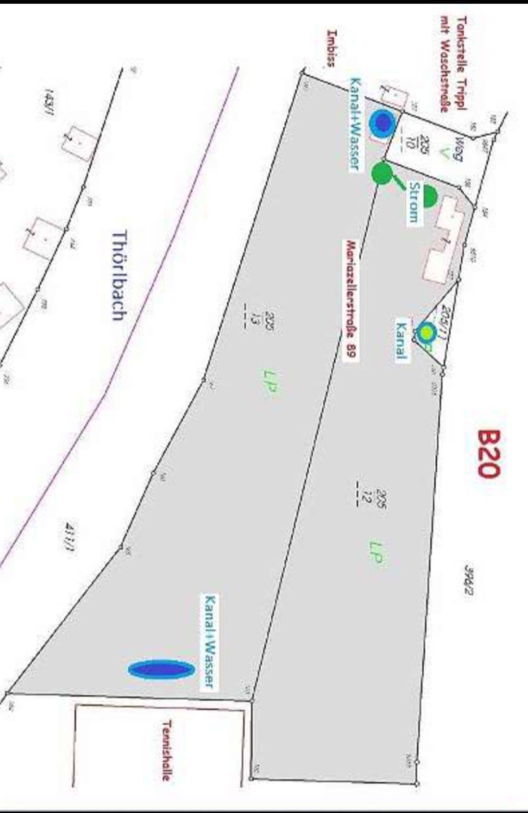 205/12 mit Schranken und Gebäude 4.263 m² + 97 m² (⅓Zufahrt) = 4.360 m² (310.000,-)