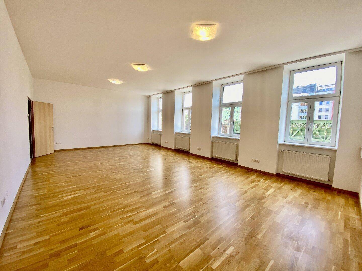 Großräumiges 2-Zimmer-Büro mit Parkettboden, 86m², 1 Zimmer straßenseitig und 1 Zimmer hofseitig, Räume getrennt begehbar, Einbauküche mit Kühlschrank, Mikrowelle, E-Herd und Dunstabzug, Bad mit Dusche, WC separat, Vorzimmer und Küche mit Fliesenboden, Gasetagenheizung.