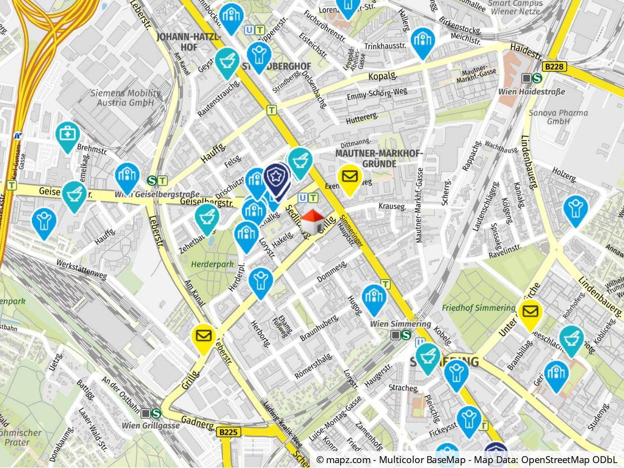 Das EKZ Simmering befindet sich in direkter Nachbarschaft. Supermärkte, Schulen, Ärzte, eine Apotheke, eine Bank und Restaurants sind fußläufig gut erreichbar. Ein Kindergarten, ein Spar- und ein Action-Markt befinden sich im gleichen Gebäude-Komplex im Erdgeschoß.