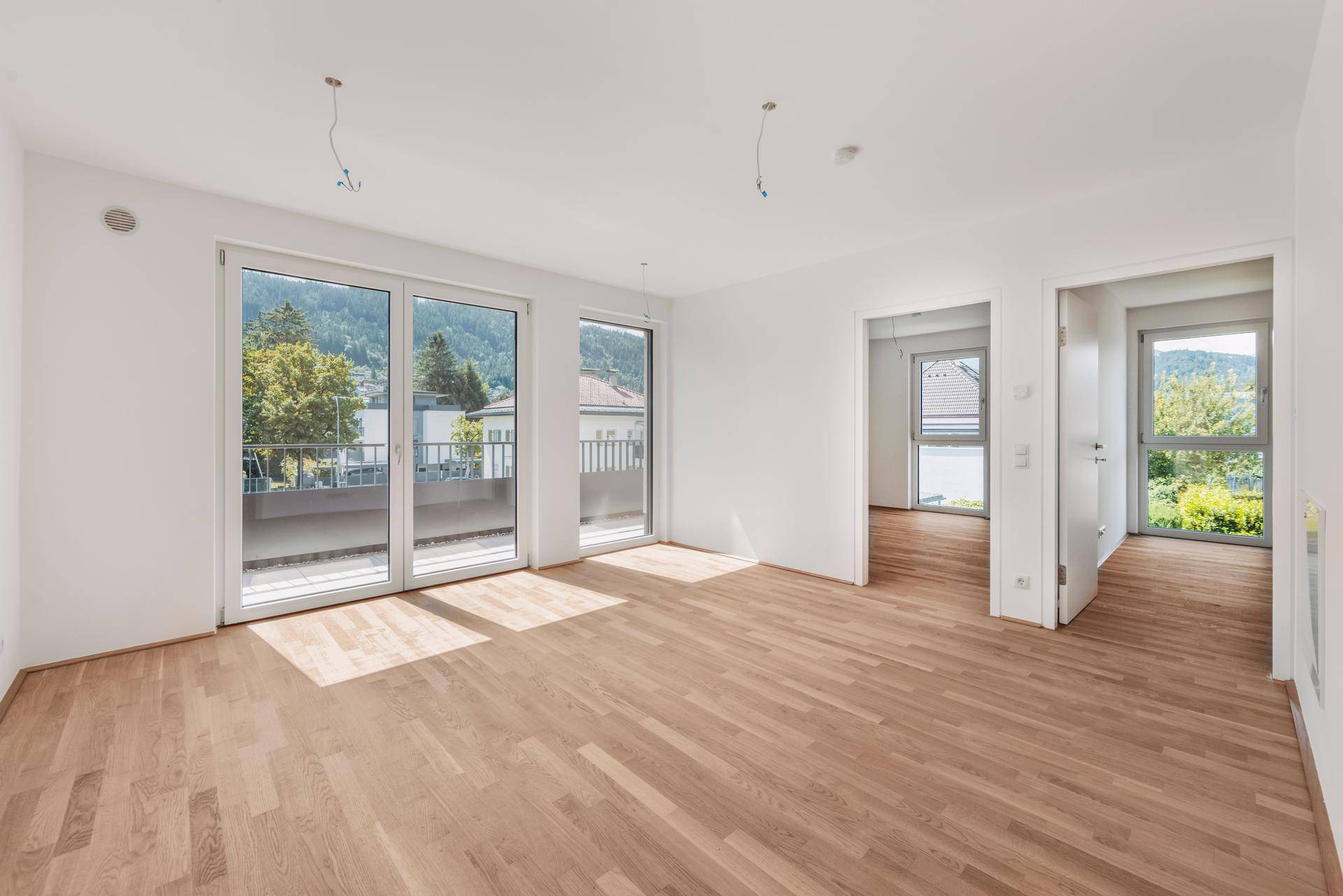 Der offene Wohnbereich ist das Herzstück der Wohnung – lichtdurchflutet, einladend und modern gestaltet. Große Fensterflächen sorgen für ein angenehmes Raumgefühl und verbinden den Innenraum harmonisch mit dem Außenbereich. Die ca. 10 m² große, südseitig ausgerichtete Terrasse ist ideal für entspannte Stunden im Freien. Komplettiert wird der Wohntraum mit zwei gemütlichen Schlafzimmern welche für einen ruhigen Rückzugsort sorgen.