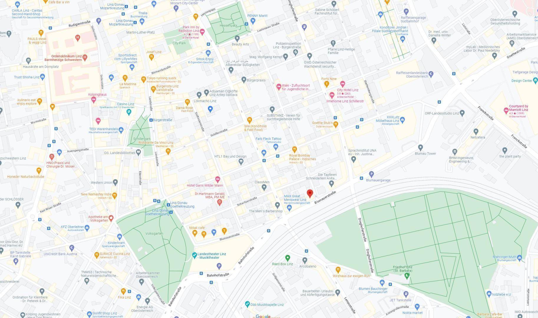 Die Tiefgarage befindet sich an der Ecke Blumauerstraße 29 / Schubertstraße 48 a in 4020 Linz.