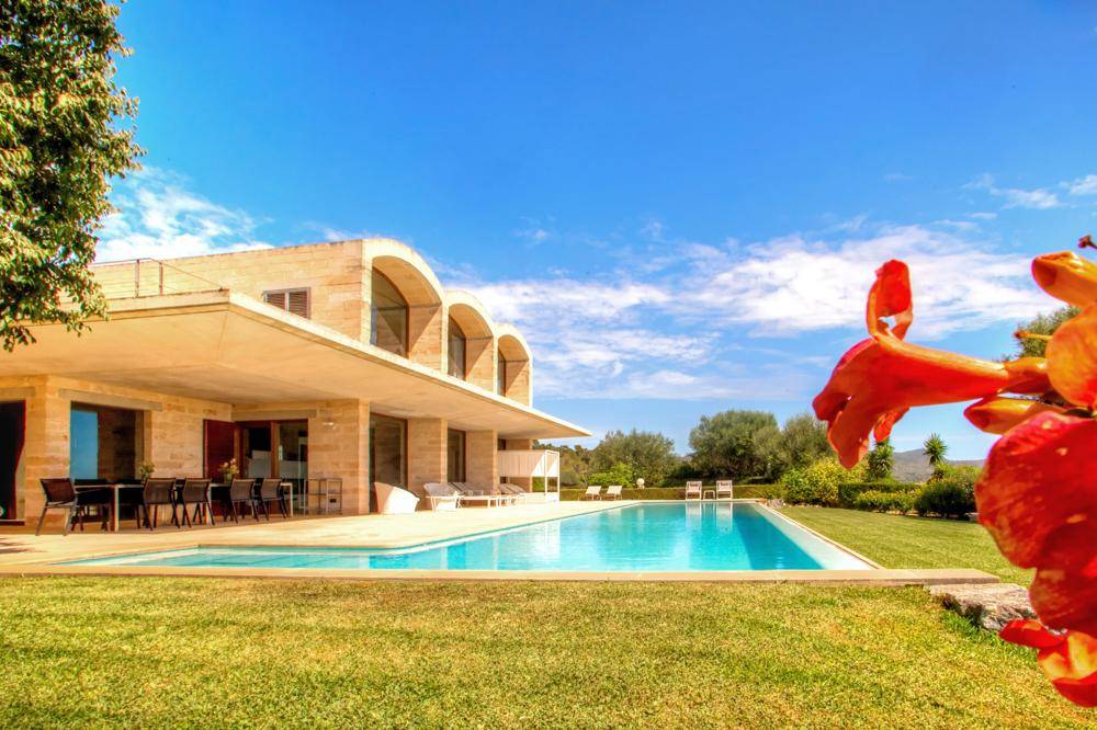 Das äußerst wohnlich gestaltete Interieur zeichnet sich durch weitläufige, offen gestaltete Räumlichkeiten und eine geschmackvolle Kombination aus modernen Gewölbedecken und hellen Marés-Wänden aus mallorquinischem Sandstein aus.