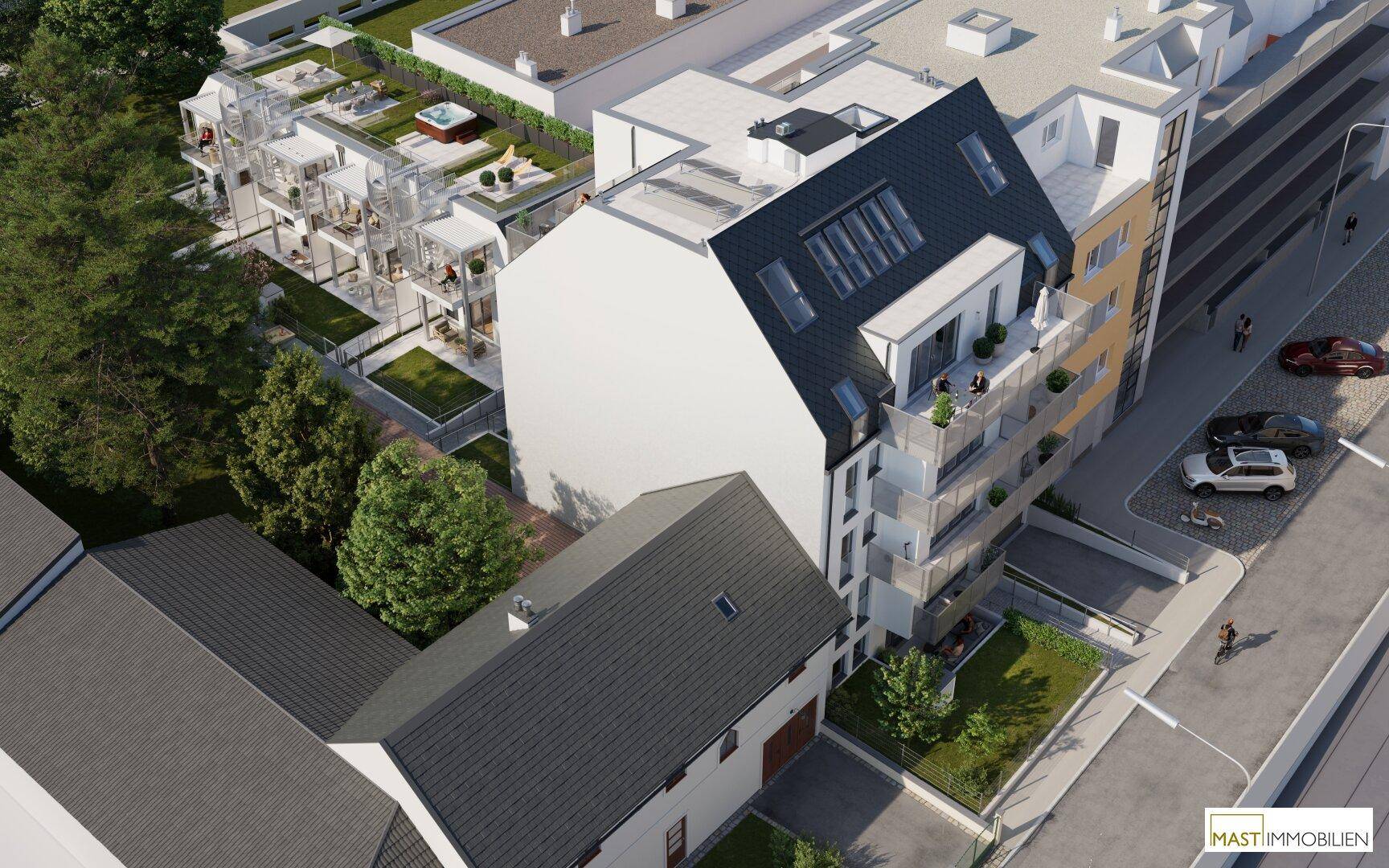 Zum Verkauf gelangen 16 freifinanzierte Wohnungen und 4 freifinanzierte Town-Houses.