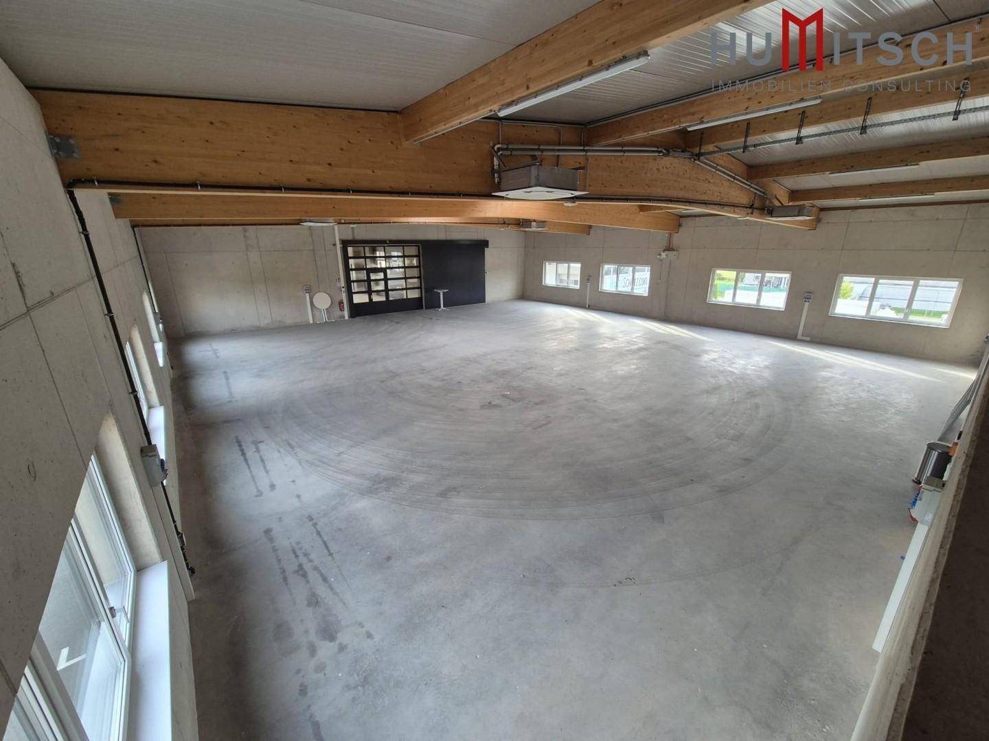 Ausstattung: Tor B: 5m x H: 3,5m • Bodenbelege mit geschliffenen Betonplatten • Wände in Stahlbeton und Vollwärmeschutz • Unterschiedliche Raumhöhe und Einfahrtstore • Beleuchtung mittels LED-Leuchten • beheizbar • Elektro-Ausstattung: 1x Lichtschalter mit einer Steckdose, 1x Doppelsteckdose samt Lichtstrom und 1x Starkstromsteckdose • Wasseranschluss (auf Anfrage)