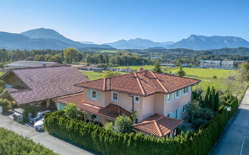 Dieses zauberhaft mediterran anmutende Familienanwesen in erhabener Hanglage in Elixhausen wird Sie begeistern! Die grandiose Bergkulisse, das großzügige Wohnkonzept inklusive Wintergarten und Panoramaterrasse, herrlich viel Platz für private Rückzugsräume und eine reizvoll blickgeschütze Garten-oase mit Pool. Ein Haus zum Zuhause ankommen, in dem Sie auf Anhieb Gemütlichkeit umfängt! Beschauliche Ruhe in herrlicher Aussichtslage im Ortskern, Nahversorger, Kindergarten, Schule etc. sind nur wenige Schritte entfernt. Sportler sind hier ebenso zu Hause wie Pferdefans, die sich über den nahen Reiterhof freuen, Obertrumer- und Mattsee sind rasch erreicht, Salzburg ist nur 10 Autominuten entfernt. Im weitläufigen Wohnsalon zaubern Specksteinofen und italienischer Cottoboden ein Ambiente voll Harmonie u. Wärme: Loungezone mit Wintergarten, Essbereich und die Minacciolo-Holzküche mit Zugang in den Kräutergarten gehen offen ineinander über, auf der Travertin Terrasse empfängt Sie die sensationelle Aussicht in die Berge. Der Eltern-Bereich auf dieser Ebene besteht aus Schlafzimmer mit Ankleide und Bad ensuite. Im OG vier vielseitige Zimmer und zwei voll ausgestattete Bäder. Im UG gelangen Sie über einen schicken taghellen Raum direkt zum Pool und ins Gartenparadies. HWB 96
