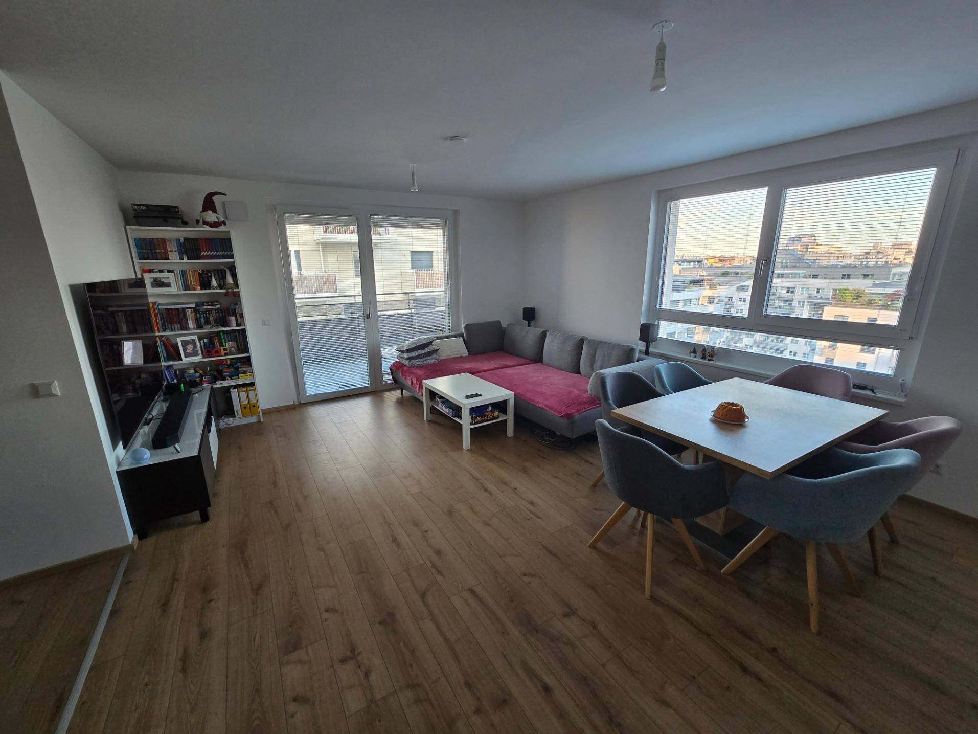 Moderne 3-Zimmer-Neubauwohnung im 8. Stock eines 9-stöckigen Gebäudes in der Leystrasse 155, 1020 Wien. Die 74 m² große Wohnung verfügt über einen 9 m² großen Balkon und ist ab 1.12.2025 für monatlich 1076 € zu mieten.