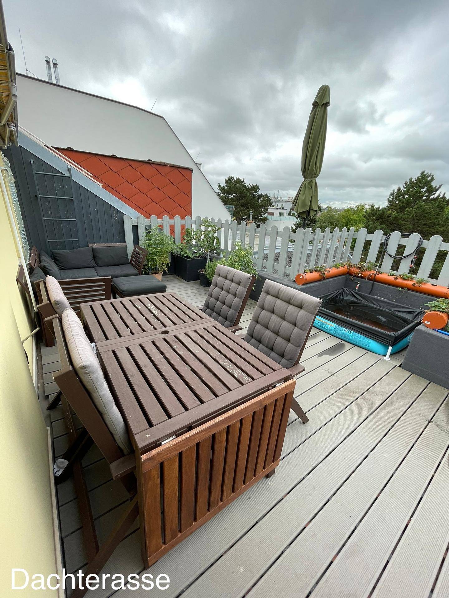 Dachgeschoßwohnung mit folgender Aufteilung: • 3 Grosszügige Schlafzimmer (20m2) • Küche separat mit Esstisch • Wohn-, Esszimmer ( knapp 25m2) • Bad mit Eck-Badewanne inkl. Regendusche, Doppelwaaschbecken, Handtuchwärmer und WC • Gäste WC • 2 Abstellräume • Dachterrasse mit Wasser & Strom Anschluss, sowie 2 Markisen • Im Eigentum ist ein Bereich im Innenhof (ca. 30m2) mit absperrbarer Hütte und Sitzmöglichkeiten inkludiert • sehr gute Parkmöglichkeit direkt vor der Tür