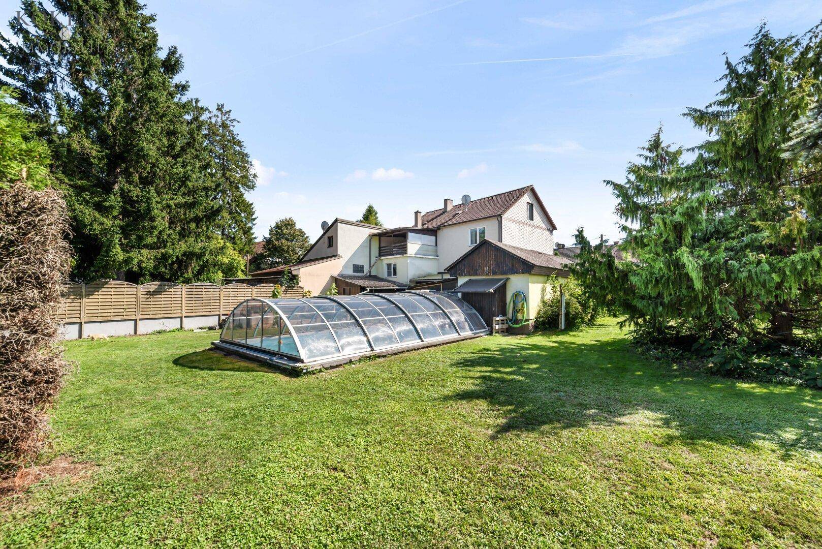 Das 1928 erbaute Haus wurde im Jahre 1962 um ein Stockwerk erweitert. Somit entstanden zahlreiche Räumlichkeiten, zur Entfaltung Ihrer persönlichen Raumbedürfnisse. Der grosszügige Garten mit einem herrlichen Pool, bietet Platz für Grillabende mit der Familie und Freunden, Trampolinbereich für Ihre Kinder und diverse Stauden und Beetanlagen. Eine vollausgestattete Sommerküche ist bereits vorhanden und lädt zum kochen ein. Die bereits vorhandenen Gartenhütten, sind ideal um Werkzeug, Rasenmäher & Co zu verstauen.