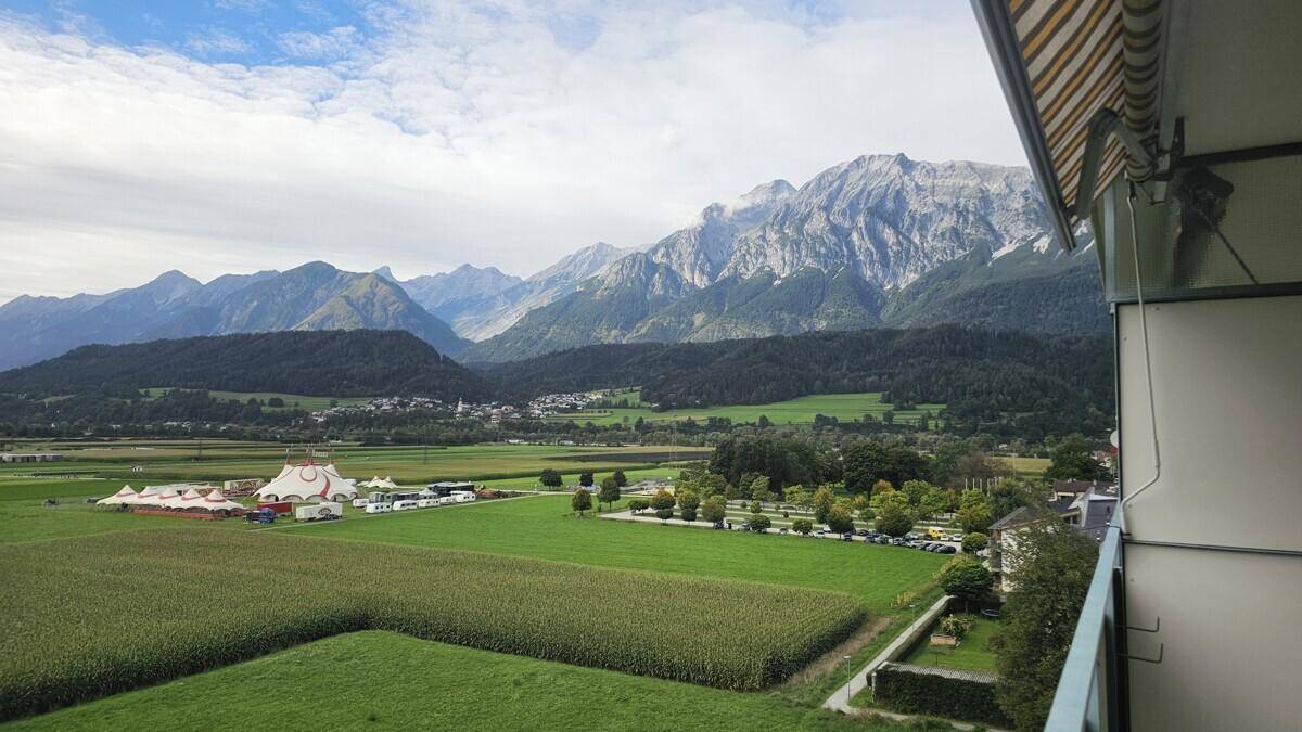 Die angebotene 3-Zimmer-Wohnung bietet eine traumhafte Aussicht über Felder bis nach Volders, Mils und in die umliegende Bergwelt. Bei klarer Sicht ist sogar das Ranggerköpfl in Oberperfuss ersichtlich.