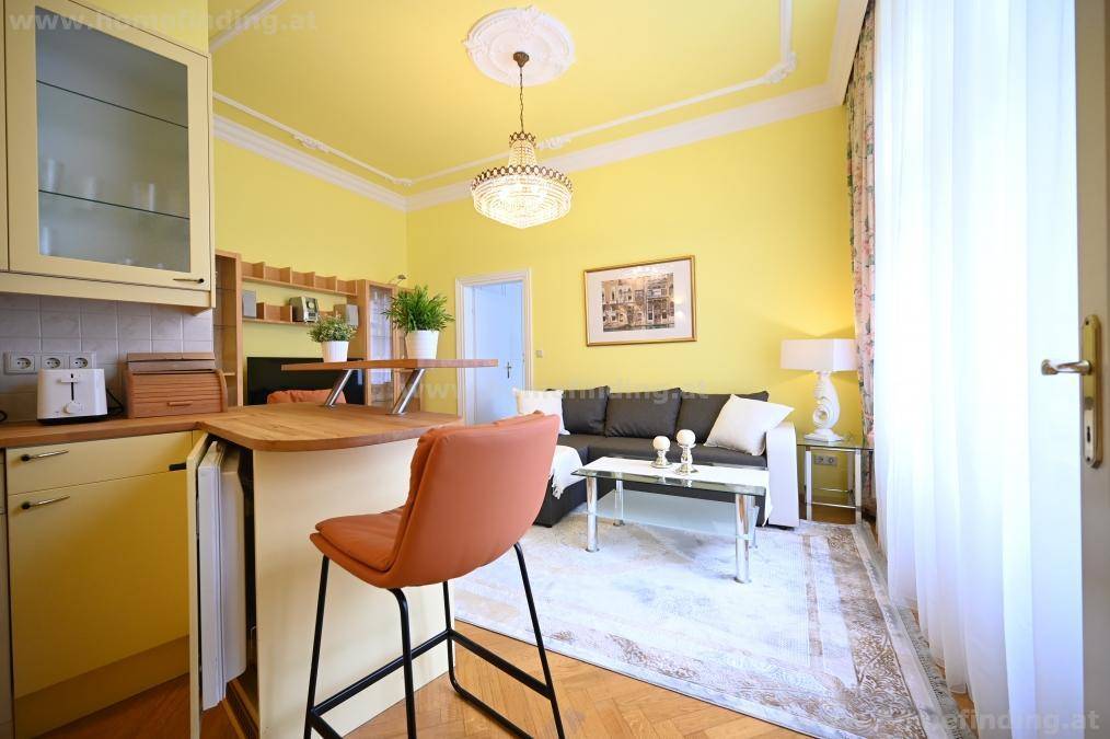 schön möblierte Wohnung in einem Jugendstilhaus aus dem Jahre 1899 in einer verkehrsarmen Parallelstraße zur Mariahilfer Straße.