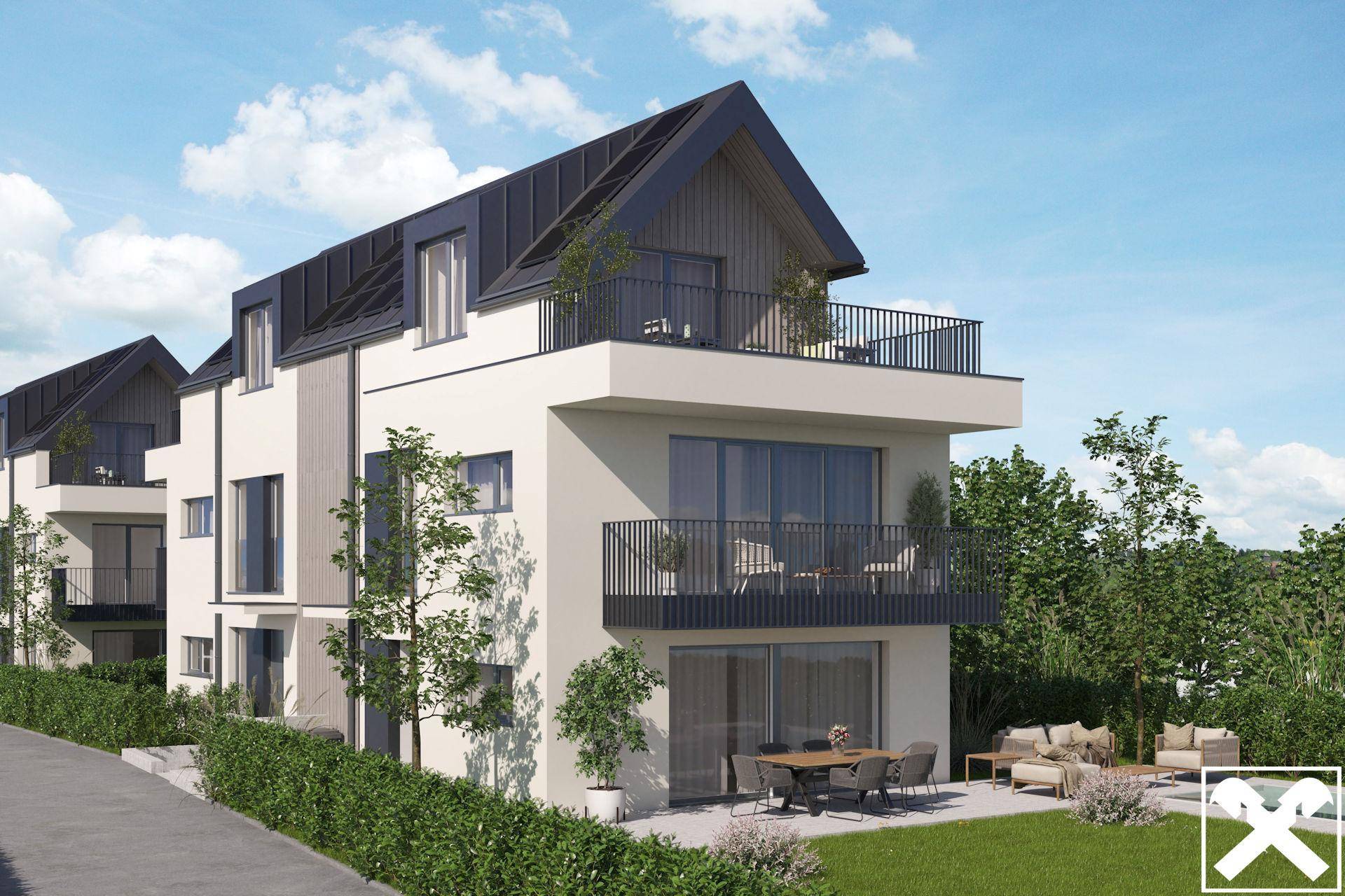Ergänzt wird dies durch eine 18m² große Dachterrasse, die atemberaubende Blicke auf die umliegende Berge ermöglicht. Der große Wohn-Essbereich sorgt für ein offenes und einladendes Wohngefühl. Die exklusiven Doppelhaushälften spiegeln die perfekte Balance zwischen urbanen Lebensstil und idyllischer Ruhe wider. Hochwertige Ausstattung, modernes Design und eine durchdachte Planung machen sie zu einem harmonischen Wohngefühl.