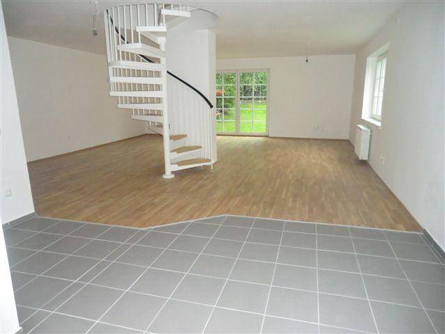 Die Wohnfläche unterteilt sich im Erdgeschoß in Vorraum, Abstellraum, Badezimmer mit Wanne und Dusche, extra WC sowie ein extra großes Wohnzimmer mit optisch abgeteilter Küche und Ausgang in den Garten.