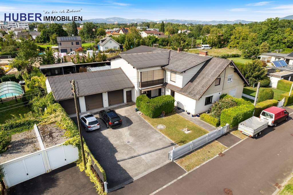 Über die linke Garage gelangen Sie zudem direkt in den weitläufigen Gartenbereich. Dort erwarten Sie ein Carport in Flugdach-Ausführung, mehrere absperrbare und mit Strom sowie Licht ausgestattete Gartenschuppen, eine wettergeschützte Holzterrasse mit Beschattung, sowie ein überdachter Einbaupool – perfekt für entspannte Stunden mit Familie und Freunden.