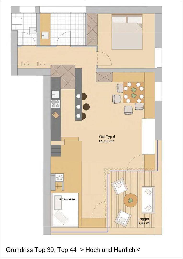 Mit bis zu 83 m² Wohnfläche, offener Galerie, Tiroler Sitzecke und Panoramablick in drei Himmelsrichtungen zählen die h&h-Suiten zu den exklusivsten Einheiten des Hauses. Sie vereinen Großzügigkeit, Luxus und alpinen Stil – die perfekte Kombination für hohe Nachfrage bei Gästen und stabile Rendite für Investoren.
