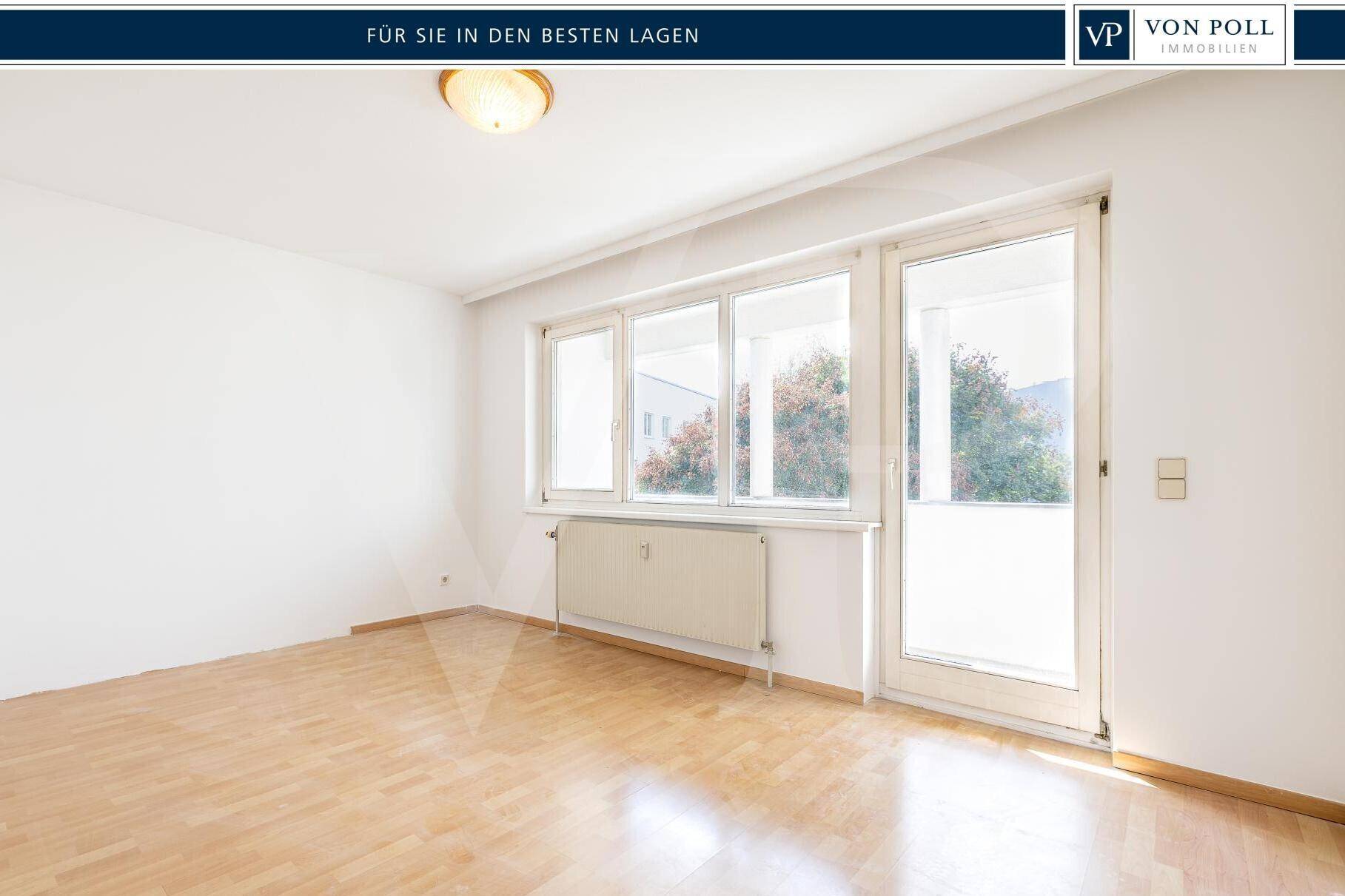 Der helle Wohnbereich bietet Zugang zur großzügigen Loggia mit Süd-Ost-Ausrichtung – ideal für Frühstück oder entspannte Stunden im Freien. Am anderen Ende der Wohnung gelangt man auf eine zweite, kleinere Loggia mit Süd-West-Ausrichtung – optimal für Nachmittags- und Abendsonne.