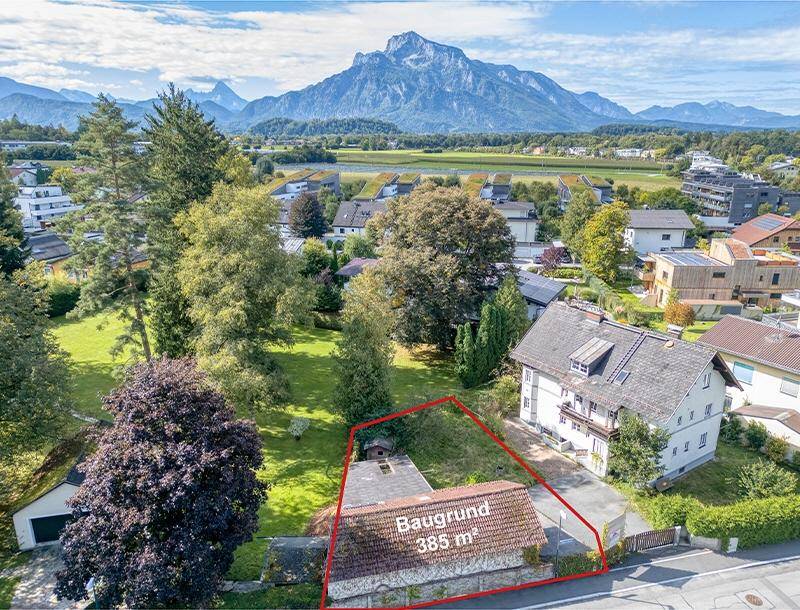 Rarität! Dieses sonnenverwöhnte 385 m² große Grundstück in Premiumlage im begehrten Aigen liegt eingebettet in beste Nachbarschaft mit gepflegten Einfamilienhäusern. Die noble Lage im Süden Salzburgs ist bekannt für die hohe Lebensqualität, die herrliche Ruhe und den nahen Erholungsraum mit weiten Grünflächen. Auch an Infrastruktur fehlt es nicht: Einkauf, Bank, Apotheke, Gastronomie etc. finden Sie entlang der Aigner Straße, auch Kindergarten und VS befinden sich in unmittelbarer Umgebung. Schloss Aigen und der Aigner Park sind nur einen Spaziergang entfernt. Lassen Sie sich von der Bestlage inspirieren und verwirklichen Sie hier Ihr Traumhaus! Das voll aufge-schlossene Grundstück ist ideal ausgerichtet, eine GFZ von 0,5 ermöglicht die Errichtung eines Wohn-hauses mit ca. 155 m² Nettowohnfläche. Eine bereits vorhandene Planung sieht einen Vollkeller, einen großzügigen, lichtdurchfuteten Wohn-bereich mit herrlicher Süd-Terrasse sowie ein Homeoffice im EG vor. Im OG sind ein exklusiver Masterbeedroom samt Ankleide und Bad en suite, ein Balkon sowie drei weitere geräumige Schlafzimmer und zwei Bäder für Ihr Wohlfühlzuhause verwirklichbar.