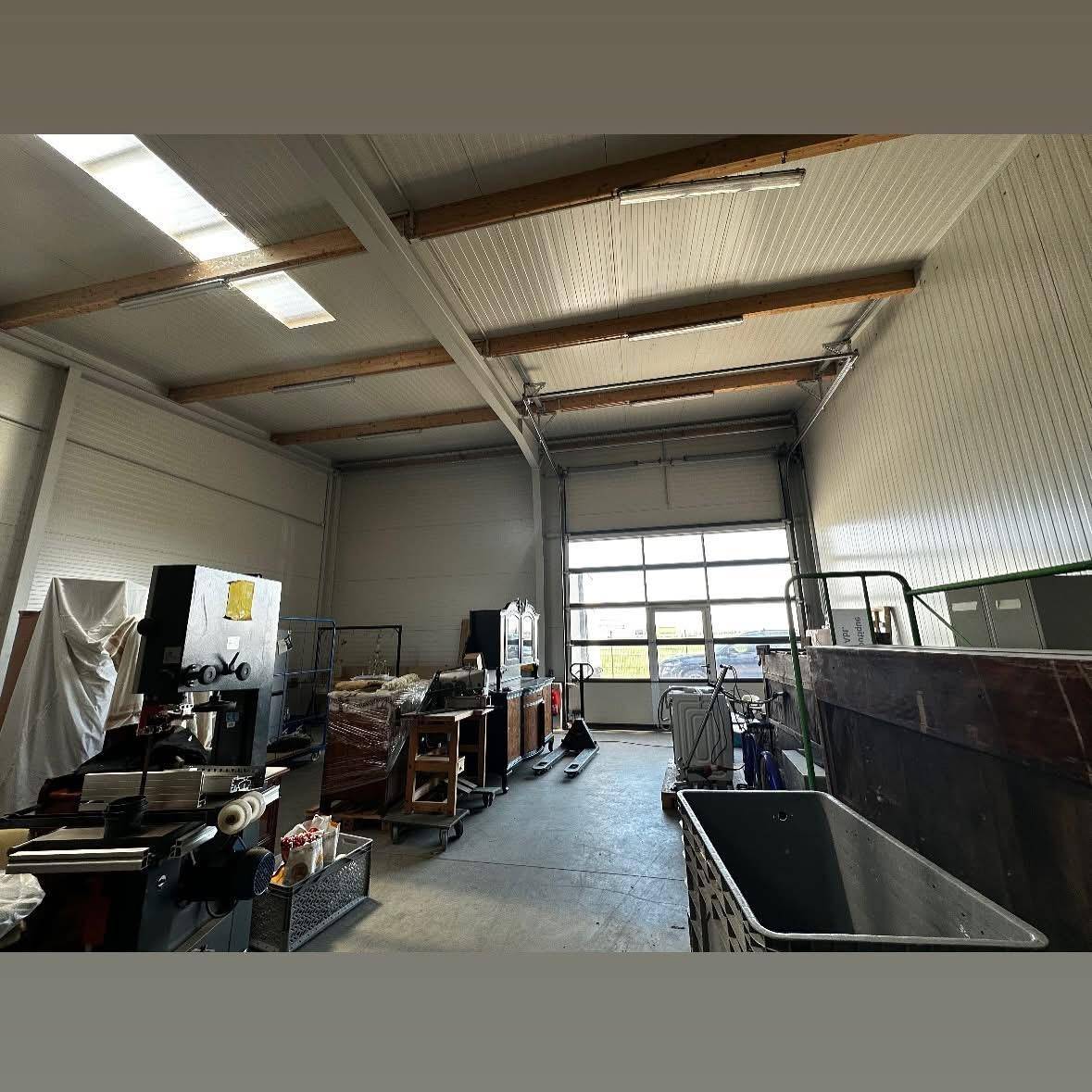 Die barrierefreie Lagerhalle verfügt über ein elektrisches Hörmann Tor, das auch für Klein-LKW geeignet ist, sowie ein elektrisches Einfahrtstor. Zur Ausstattung gehören Dachfenster, eine Toilettenbox mit Waschbecken und Gäste-WC, Starkstromanschluss und Subzähler für Strom. Die Beheizung erfolgt über eine Luftwärmepumpe mit Fußbodenheizung. Zu beachten ist, dass keine Autobastler erwünscht sind.