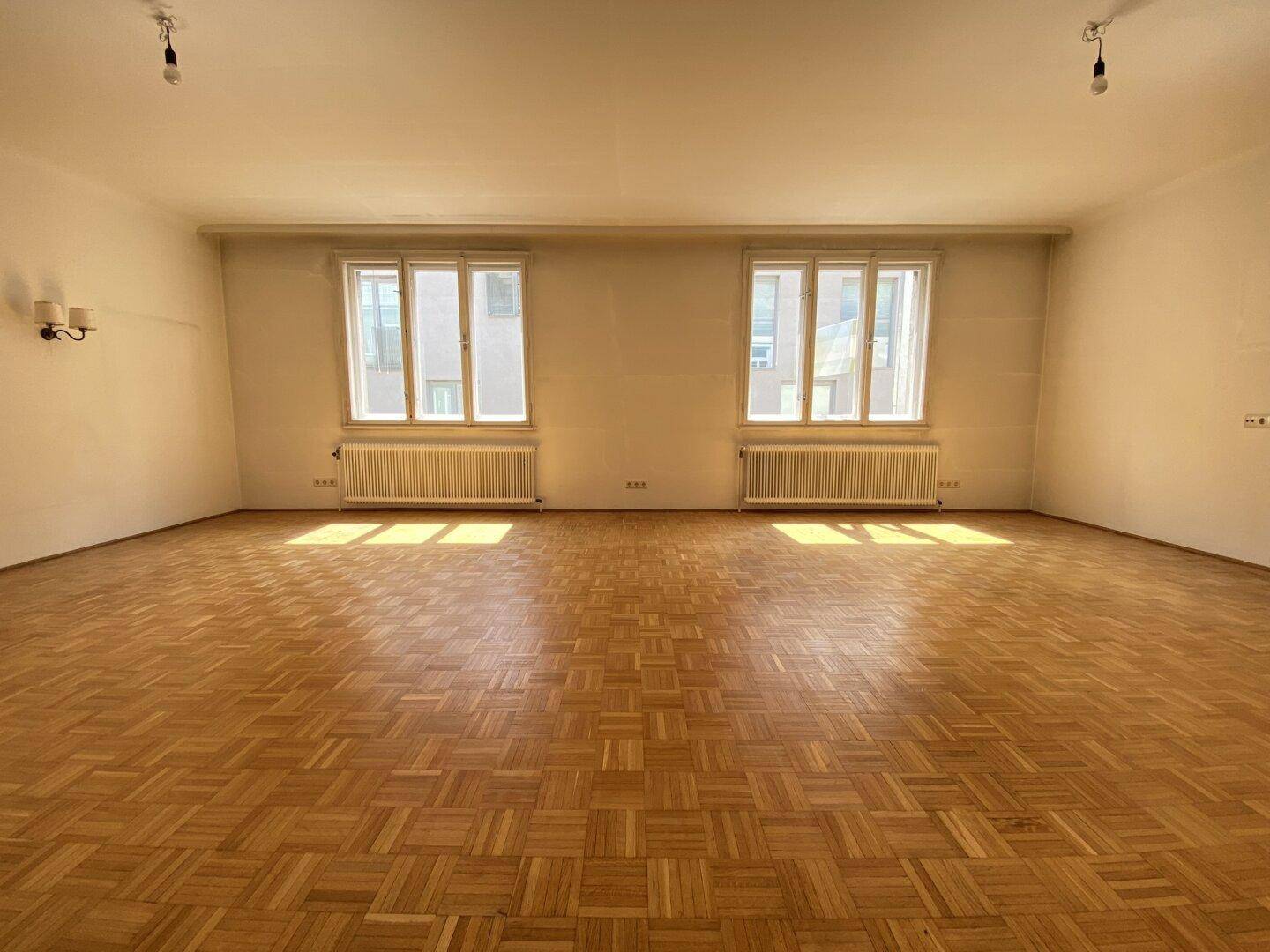 HELLE 4 Zimmer-Wohnung, perfekt eingeteilt, mit großzügigen Raumschnitten, in RUHIGER Wohnlage zwischen äußerer Mariahilfer Straße und Viktoriagasse, einer beliebten Wohngegend im Herzen von Fünfhaus / ca. 10 Min. Geh-Nähe zum WESTBAHNHOF bzw. SCHWENDERMARKT sowie unweit von SCHÖNBRUNN / ca. 160m² Wohnfläche / grundbücherlich handelt es sich um 2 Wohnungen mit jeweils rund 80m² die zu einer GROSSEN Wohnung verbunden wurden / geräumiger Vorraum + 4 Zimmer (ca. 42m², 2x ca. 21m² und ca. 12m²) + 1 großzügige, komplett ausgestattete Einbauküche + 1 Badezimmer mit Badewanne + 1 Abstell-/Wirtschaftraum (potentielles zweites Badezimmer) + 2 separate WCs.