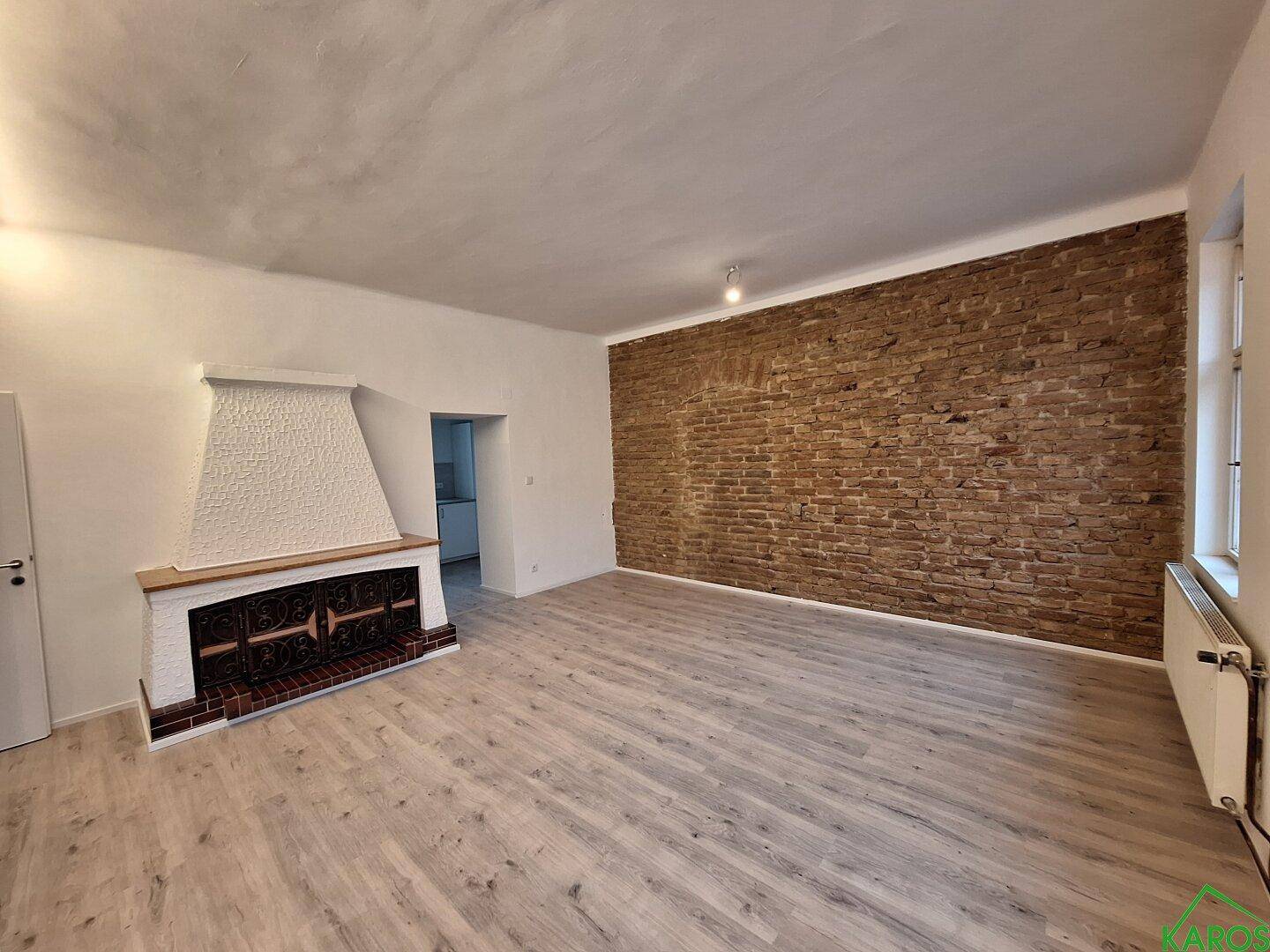 Die exklusive 2-Zimmer-Altbauwohnung mit 76,38 m² wurde kürzlich saniert und besticht durch Backsteinelemente im Industriestil.