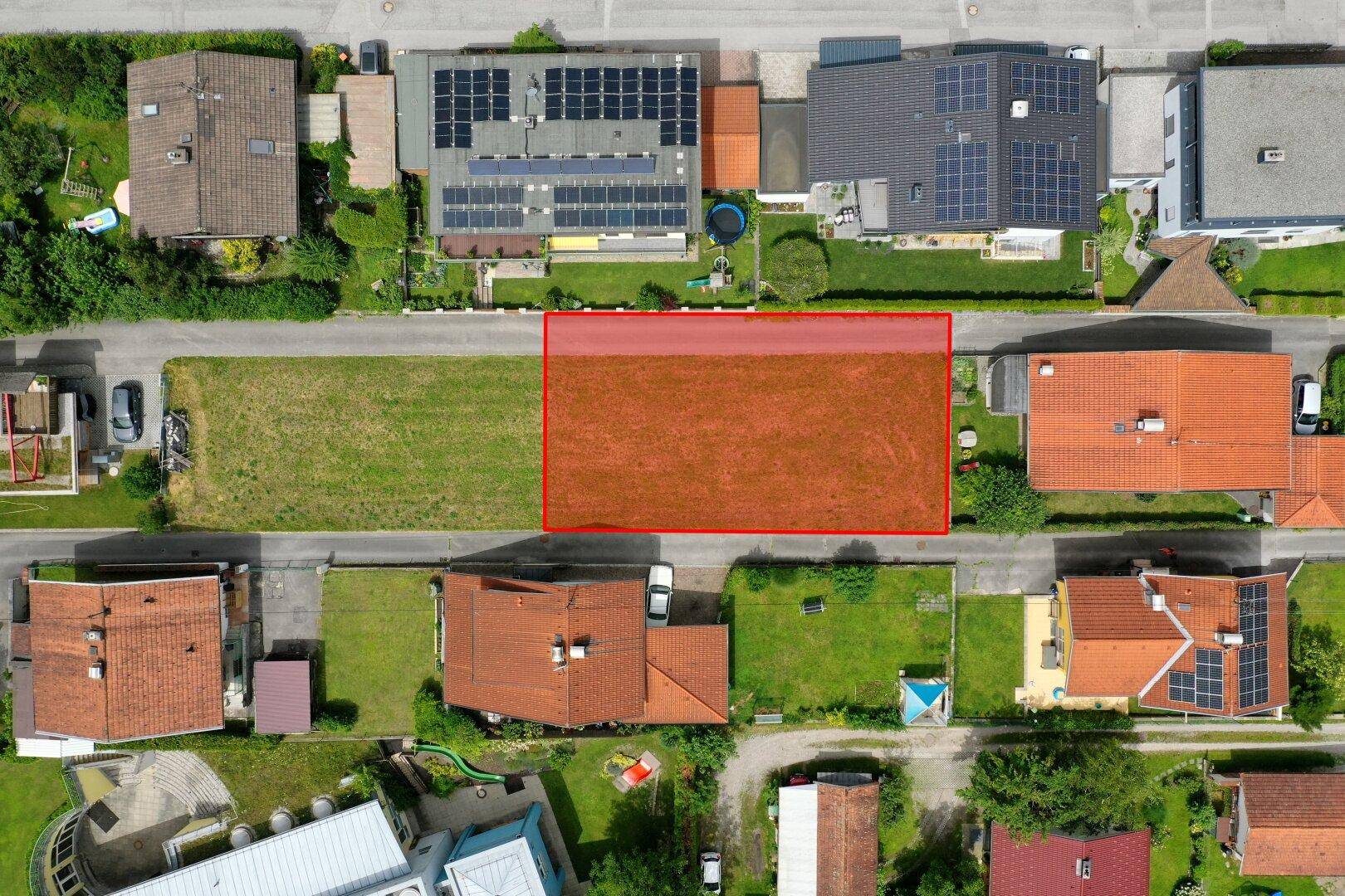 Der optimale rechteckige Schnitt des Bauplatzes und die Widmung als Wohngebiet lassen viel Spielraum zur Planung eines großzügigen Einfamilienhauses sowie eines Doppelhauses.