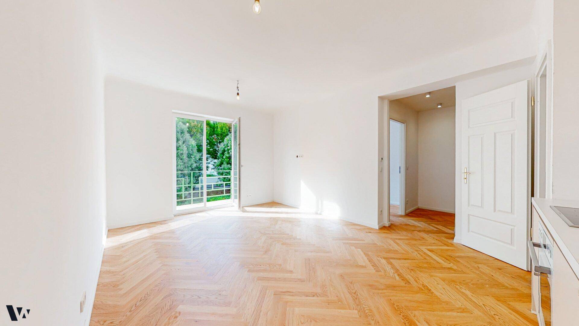Die Wohnung wurde im Zuge einer aufwendigen Kernsanierung komplett neu gestaltet: Mit erneuerter Elektrik und Sanitär sowie einem optimal auf die Wohnfläche abgestimmten Grundriss präsentiert sich die Wohnung in zeitgemäßem Design. Hochwertige Materialien wie Fischgrätparkett, Alt-Wiener Türen und neue dreifach verglaste Fenster verbinden historischen Charme mit modernem Komfort. Eine maßgefertigte EWE-Einbauküche mit Markengeräten rundet das stimmige Gesamtbild ab. Ein weiteres Highlight ist das innovative Infrarot-Flächenheizsystem, das unsichtbar in die Decke integriert wurde und für zeitgemäßes, effizientes Wohnen sorgt.