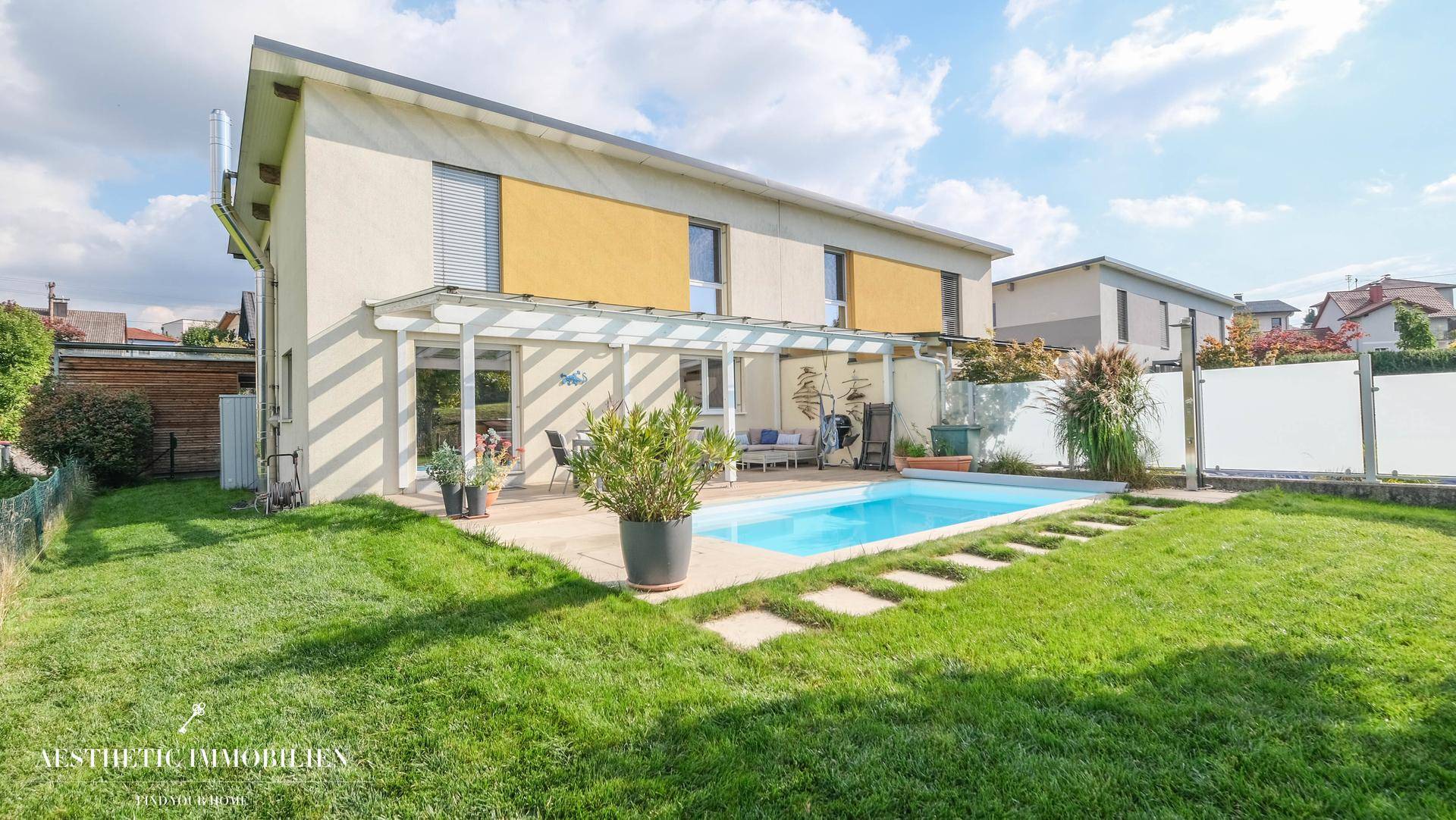 Moderne Einbauküche Badezimmer mit Sauna Garten Pool Raffstores Carport (2 Stellplätze) Fußbodenheizung Luftwärmepumpe Ruhige Lage