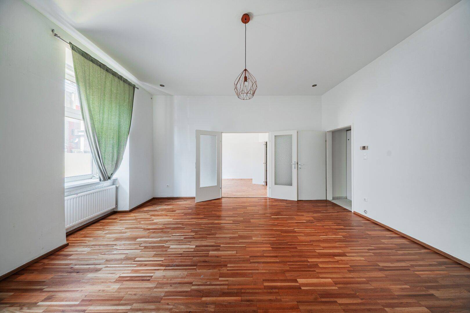 WohnungsbeschreibungDer 3-Zimmer-Altbau befindet sich im hohen Erdgeschoß und ist straßen- sowie hofseitig ausgerichtet.