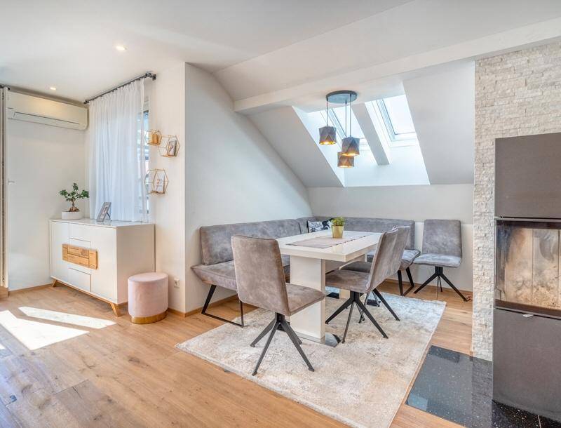 Außergewöhnliche 4-Zimmer-DG-Wohnung mit Klimaanlage auf 94,92 m² Wohnfläche im 2. OG und traumhafter ca. 40 m² Sonnenterrasse sowie einem Tiefgaragenplatz im Eigentum. Nur 8 Parteien! Beliebte Lage in Maxglan mit viel Grün, Wiesen und Spazierwegen. Alles für den täglichen Bedarf in unmittelbarer Nähe. Gute Einkaufsmöglichkeiten, Bus, Schulen etc. schnell erreichbar. Aussichtsreiches Wohnjuwel für gehobene Ansprüche! Im offenen Wohn- und Essbereich sorgt der Dänische Ofen für Wärme und Gemütlichkeit, im Sommer garantiert die Klimaanlage für Wohlbefinden. Direkt anschließend befindet sich die klassisch-moderne Küche. Absolutes Highlight ist die großzügige, teils überdachte Terrasse – perfekt für viele Sonnenstunden. Das Wellness-Bad verwöhnt mit Walk-In-Dusche und Wanne samt Platz für die Waschmaschine und den Trockner. Im großen Schlafzimmer genießen Sie ungestörte Nachtruhe. Zwei weitere Zimmer zur individuellen Nutzung stehen für Kids, Gäste oder ein Homeoffice zur Verfügung. Zusätzlich praktisch: Der Abstellraum und das separate WC. BJ 1995, sehr schön saniert, Parkett, Klimaanlage, großes Kellerabteil. TG-Platz im Kaufpreis enthalten. BK: mtl. EUR 424 inkl. Hzg. (Gas) zzgl. WW und Rücklage. BK TG-Platz: EUR 24. EA.i.A.