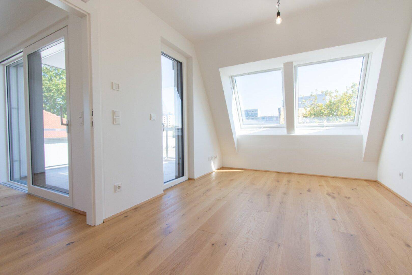Diese nach Osten ausgerichtete 2-Zimmer-Dachgeschosswohnung bietet auf rund 47 m² Wohnfläche (zzgl. Terrasse) ausreichend Platz für Ihren Wohntraum. Die Wohnung befindet sich im 2. Liftstock eines modernen Neubaus. Sie überzeugt durch moderne Architektur, hochwertige Ausstattung und einen durchdachten Grundriss.